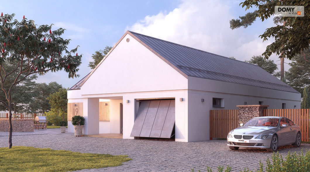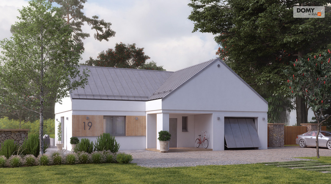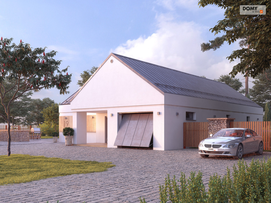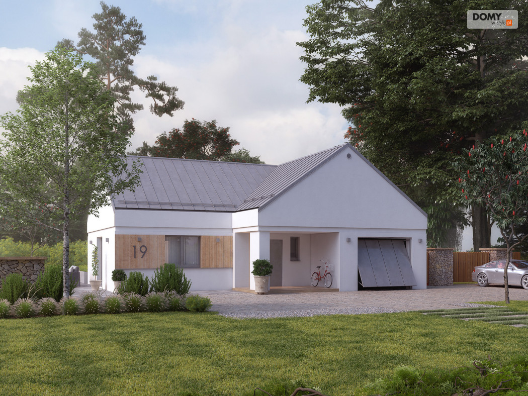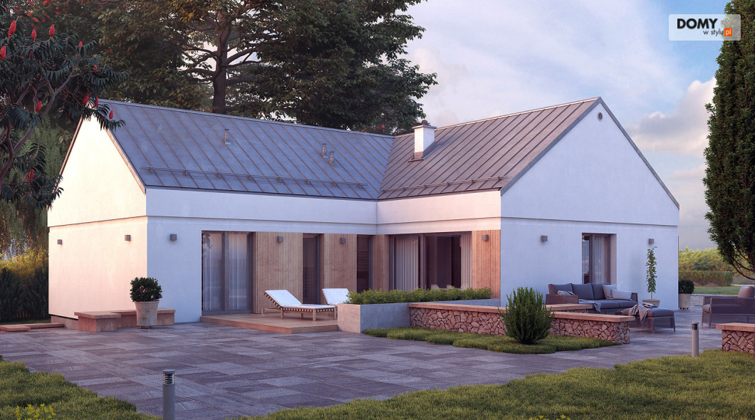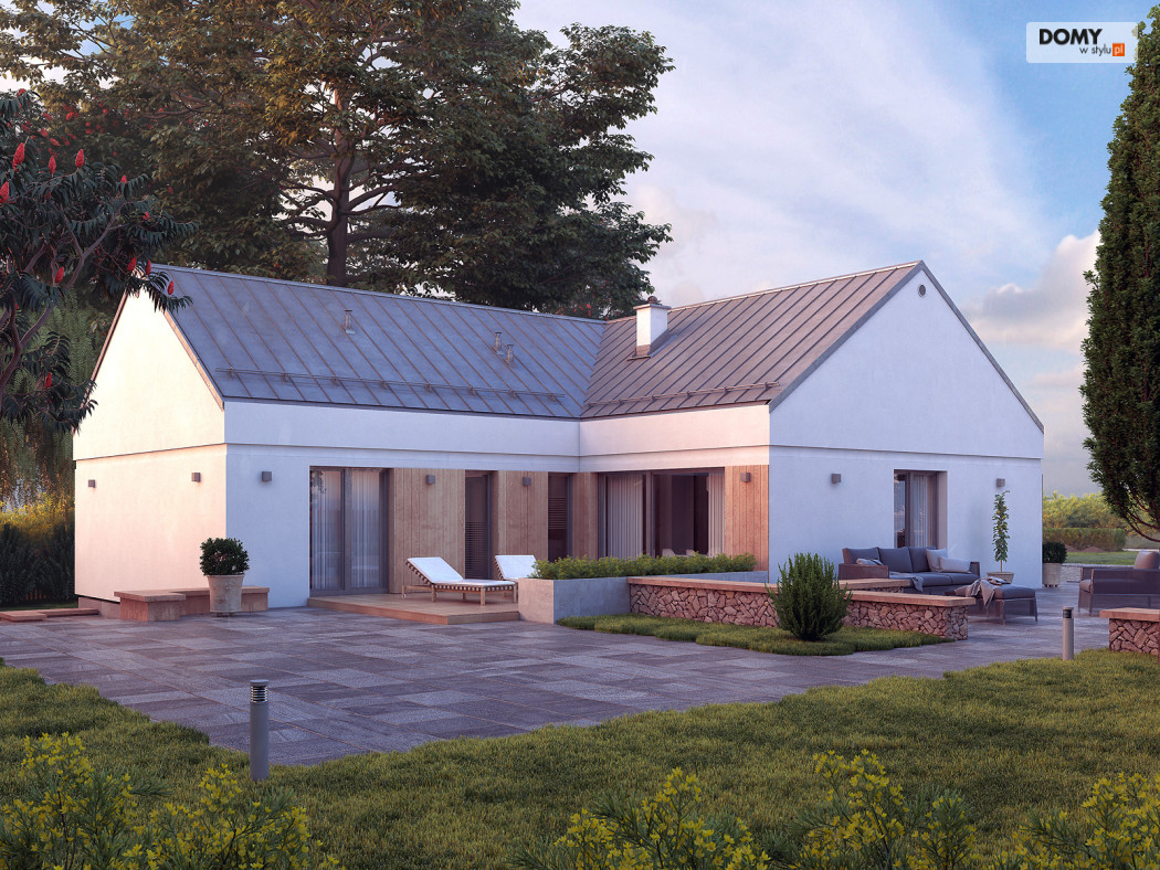 Cytrus 2 to projekt parterowego domu nawiązujący kształtem i proporcjami do tradycyjnego budownictwa domów parterowych z dwuspadowym dachem. Jednocześnie pozbawiona okapów bryła nadaje domowi nowoczesny charakter. Wewnątrz odnajdziemy układ pomieszczeń z wydzieloną strefą dzienną i nocną. Jest to najbardziej klasyczny i sprawdzony funkcjonalnie podział, który pozwoli wszystkim domownikom na niezakłócony wypoczynek. Strefa dzienna to przestronny salon z wydzieloną funkcjonalnie kuchnią. Istotnym elementem jest możliwość bezpośredniego wyjścia z kuchni na taras. Kuchnia poza pełnym programem posiada również wydzieloną spiżarnię. W części nocnej domu zaprojektowano trzy sypialnie oraz dwie łazienki. Główna sypialnia gospodarzy posiada bezpośrednie wyjście na taras.