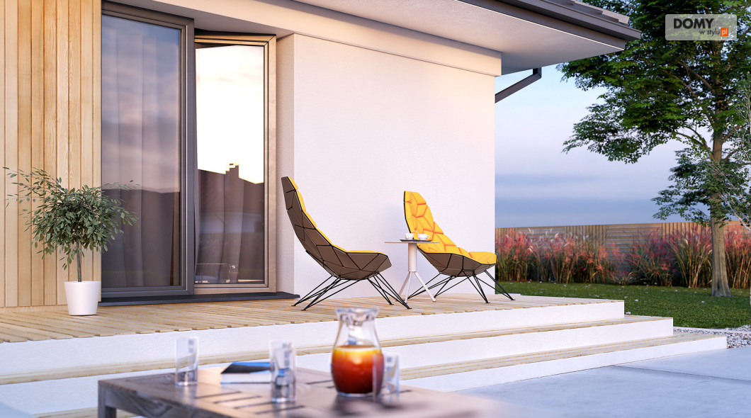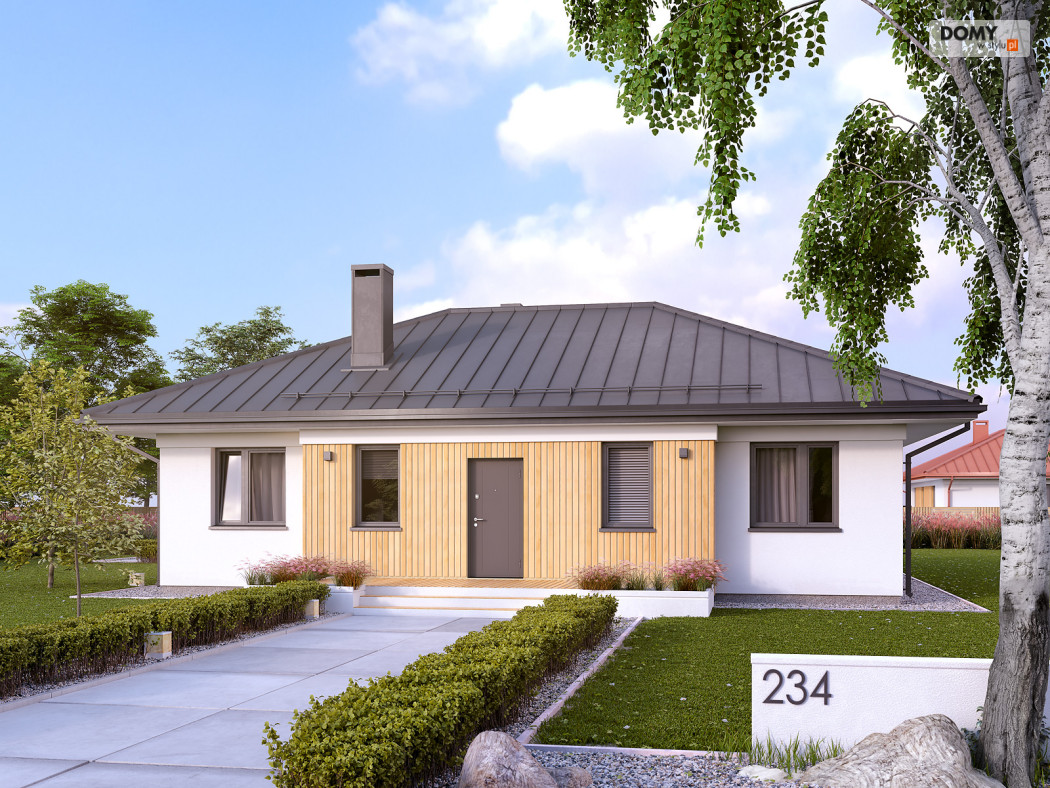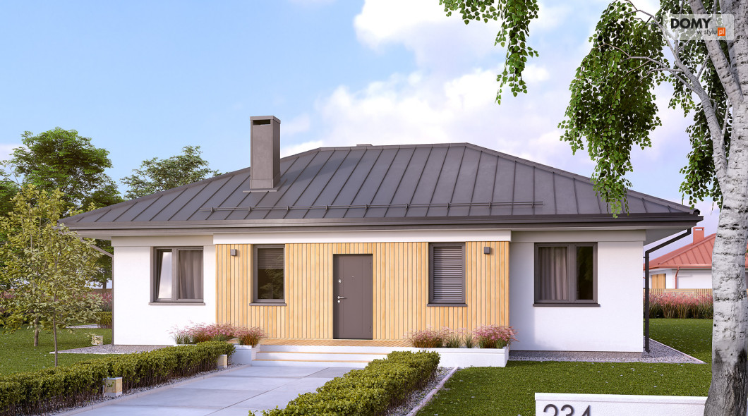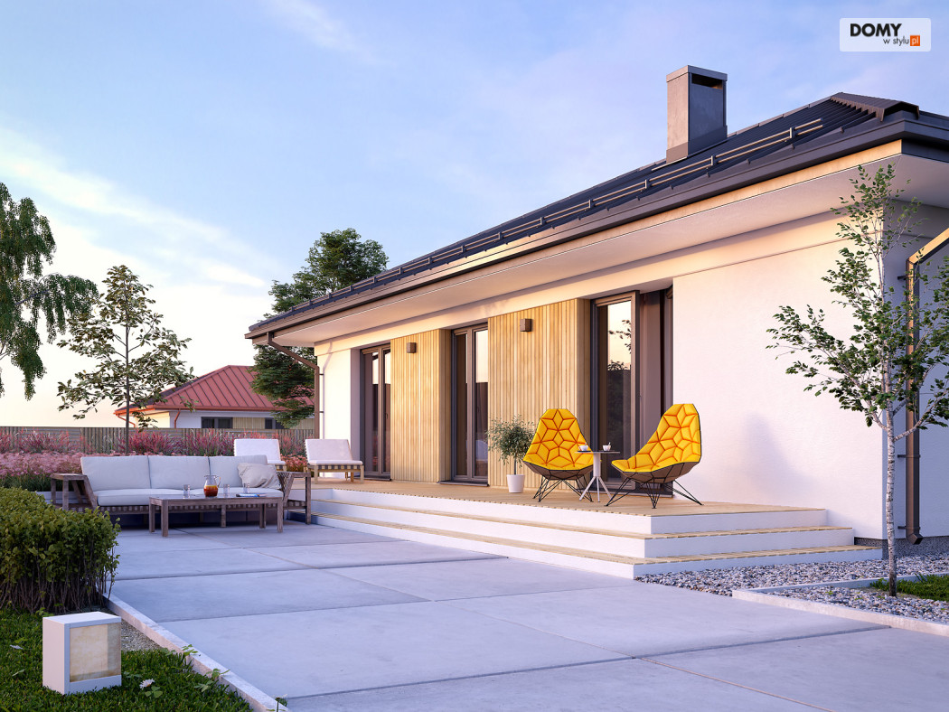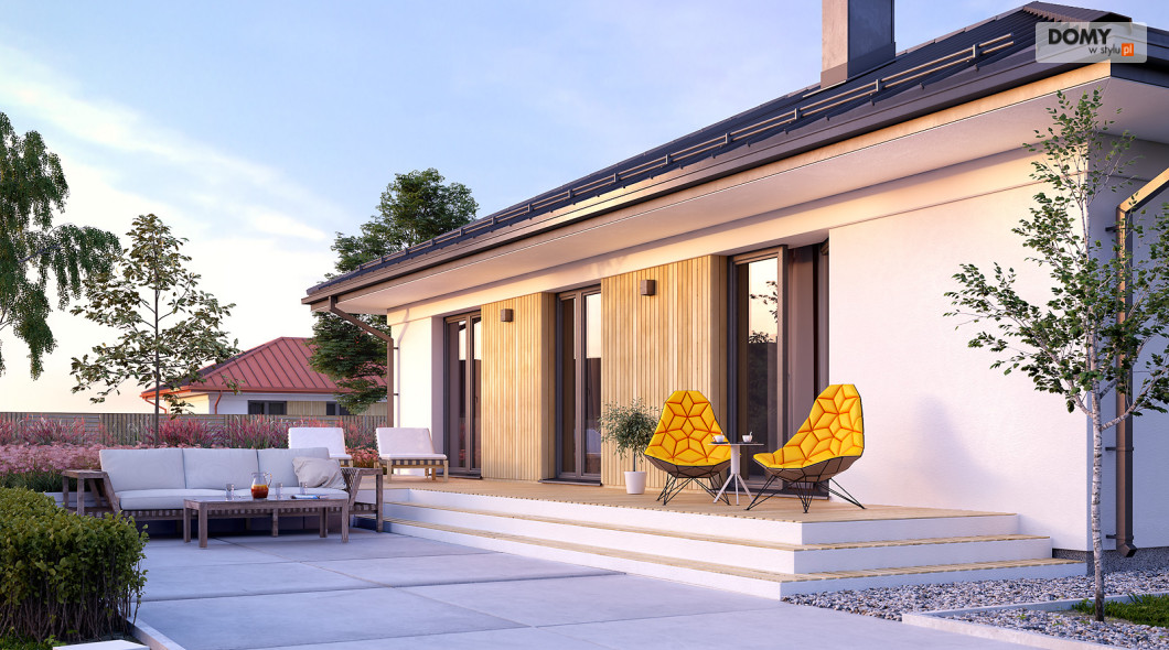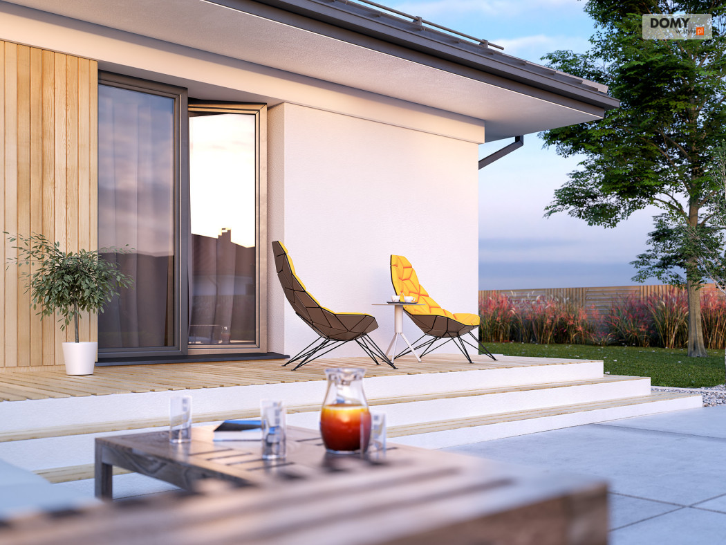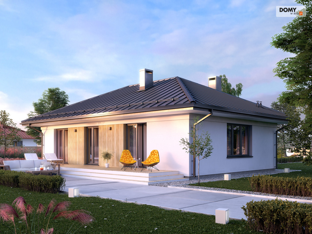 Decyma 10 to projekt niewielkiego domu jednorodzinnego przeznaczonego dla czteroosobowej rodziny. Dużą zaletą jest prosta i zwarta bryła, co wpływa na łatwą i stosunkowo niedrogą realizację projektu i jego późniejszą eksploatację. Układ funkcjonalny z pewnością spodoba się inwestorom ceniącym prostotę i funkcjonalność. W domu zaprojektowano 3 odpowiednio duże sypialnie, część dzienną z jadalnią i otwartą kuchnią, garderobę, spiżarnię oraz wiatrołap z dostępem do niewielkiej kotłowni. Na zewnątrz znajduje się duży taras, który w ciepłe, letnie dni będzie sprzyjał w organizowaniu rodzinnych spotkań.