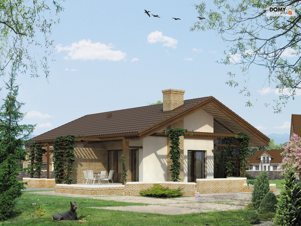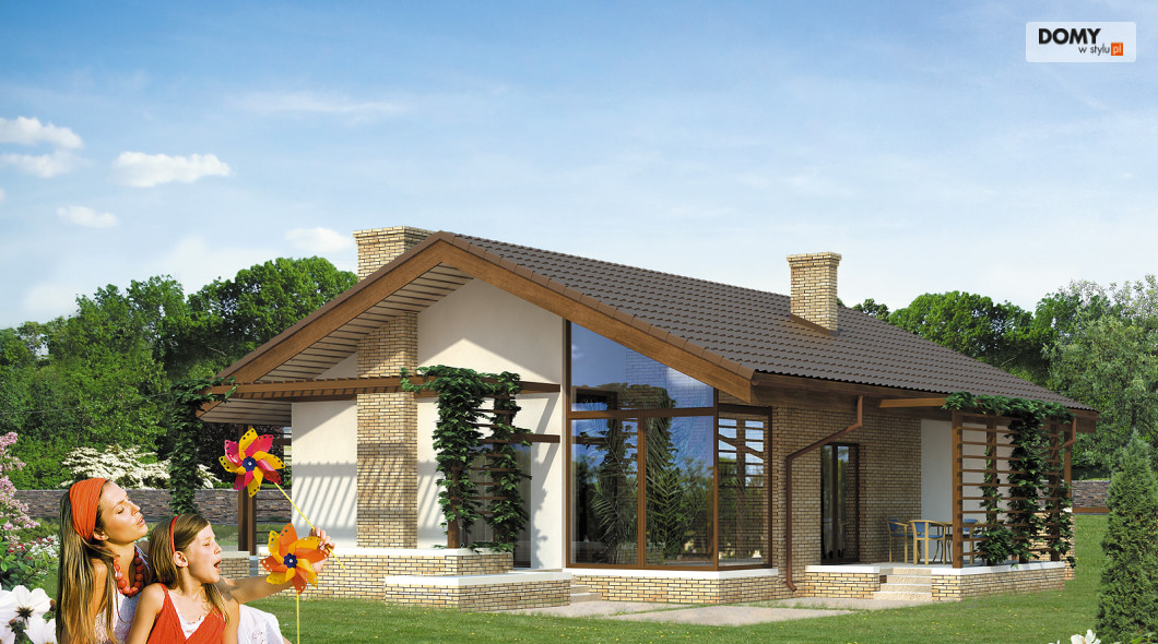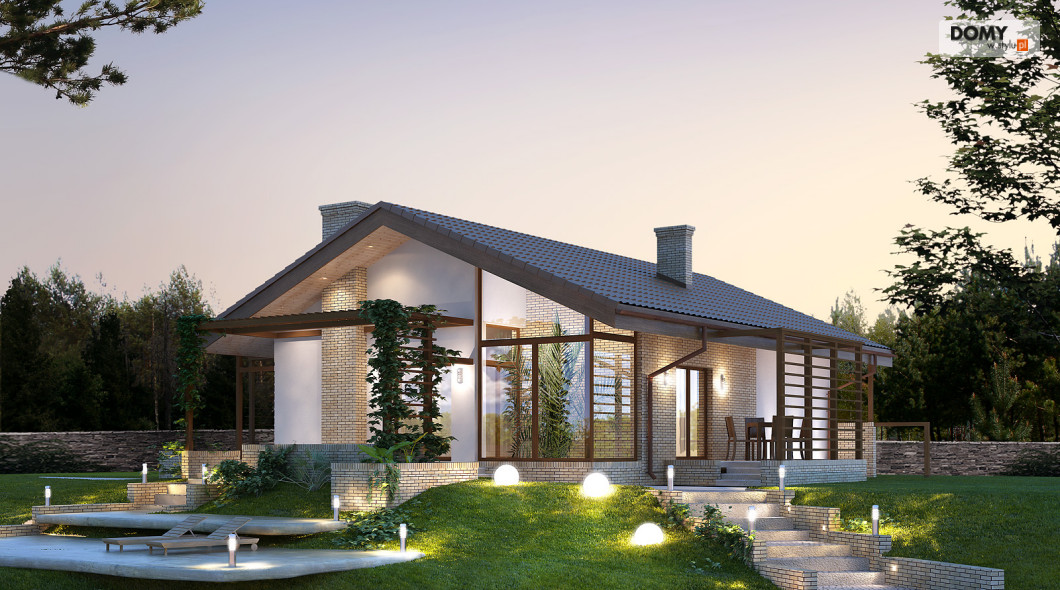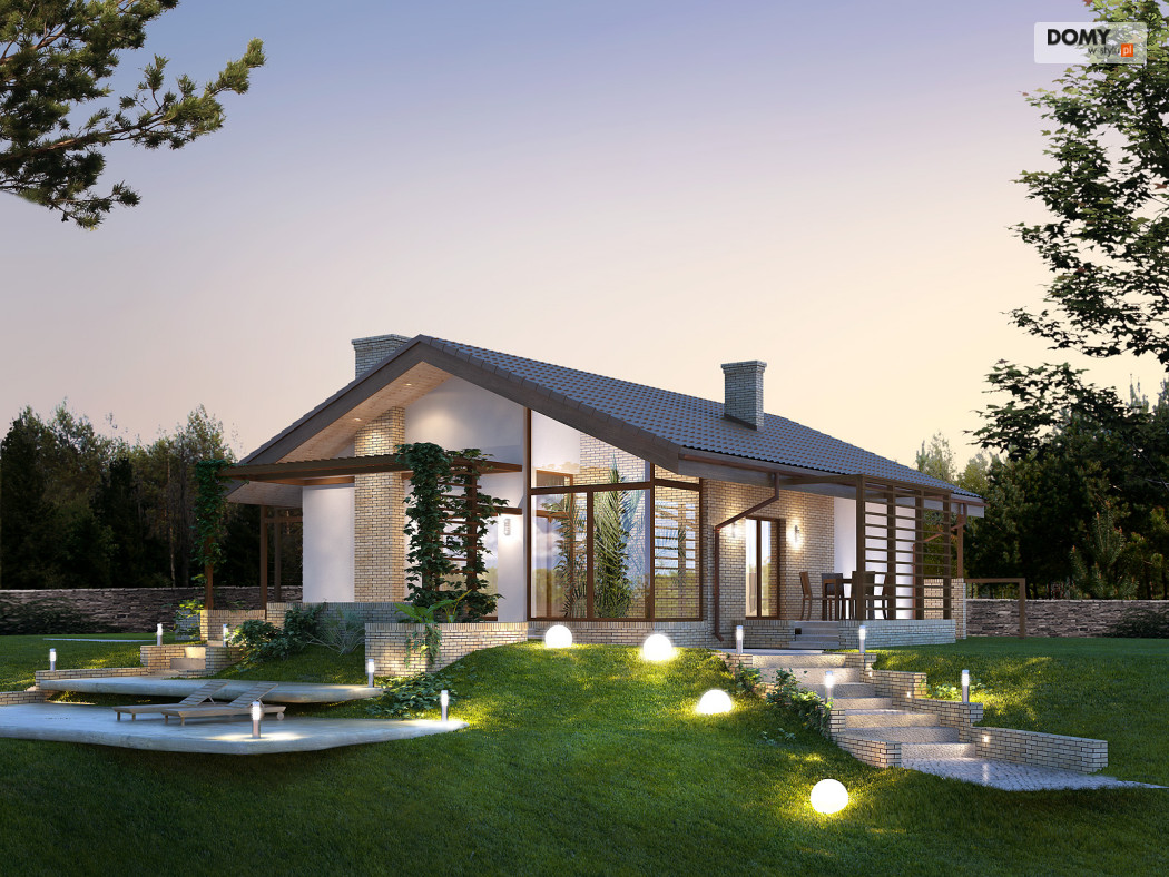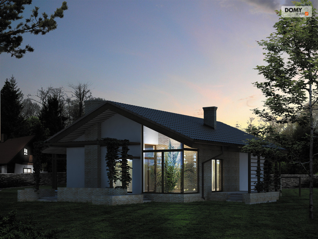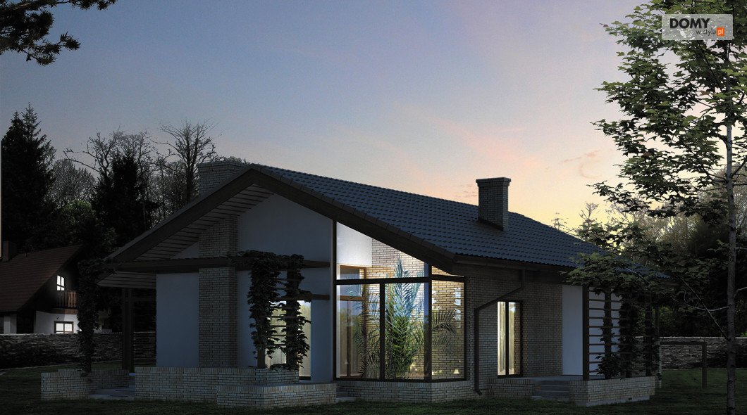 Parterowy dom jednorodzinny o czystym układzie funkcjonalnym z wyraźnym podziałem na część dzienną i nocną. Przeznaczony dla 4-osobowej rodziny. Duża część dzienna wzbogacona doprojektowaną oranżerią, otwarta na otaczającą przestrzeń. Głównym założeniem projektu było połączenie i przenikanie się wnętrza domu z otoczeniem poprzez zaprojektowanie szeregu murków i pergoli.