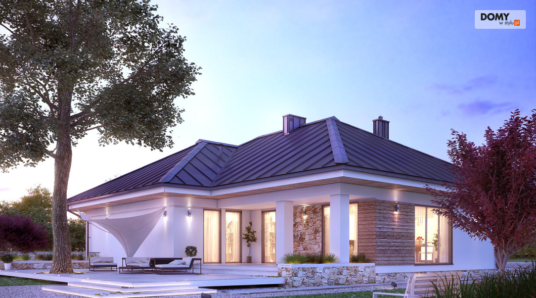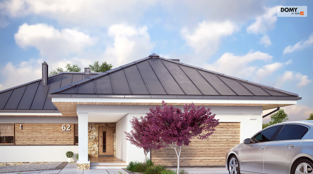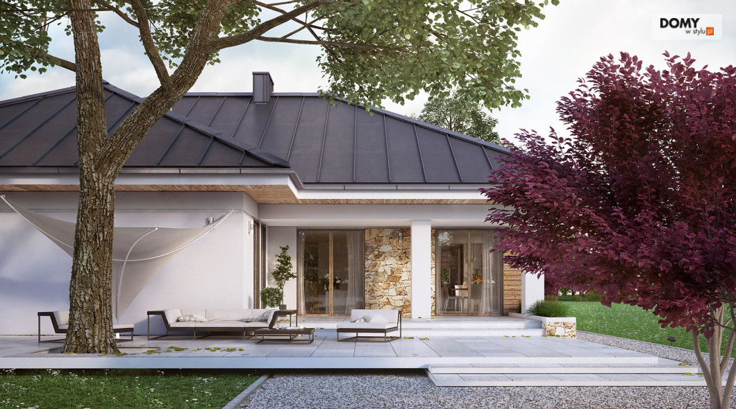 Parterowy budynek dla 4-osobowej rodziny. Przejrzysty układ funkcjonalny z podziałem na część dzienną z otwartą kuchnią i przytulną strefę prywatną. Garderoba, spiżarnia i pomieszczenie gospodarcze zapewniają dodatkową przestrzeń magazynową. Komfort użytkowania podnosi dodatkowa łazienka i garderoba dostępne z sypialni. Zadaszony taras pozwala na przebywanie na świeżym powietrzu niezależnie od warunków atmosferycznych