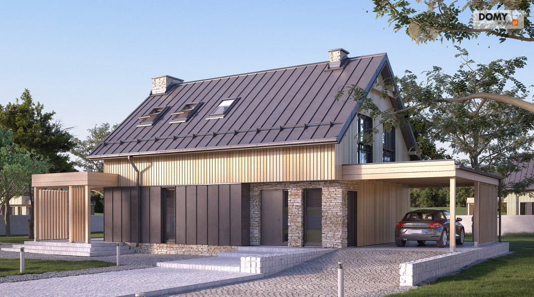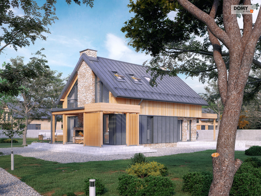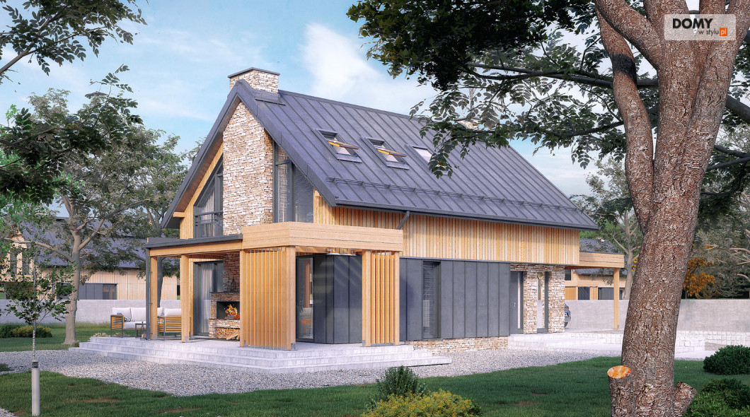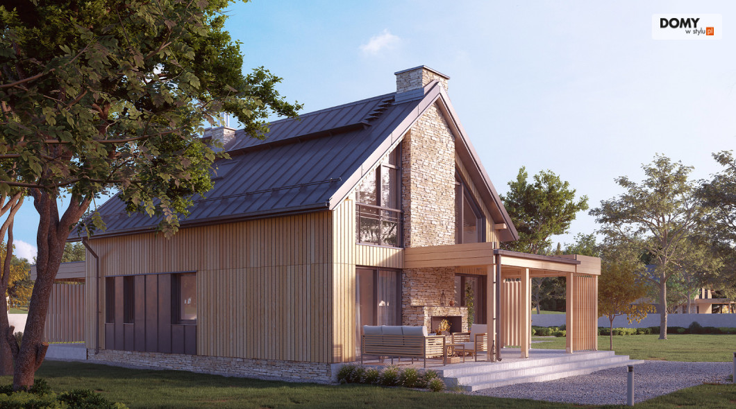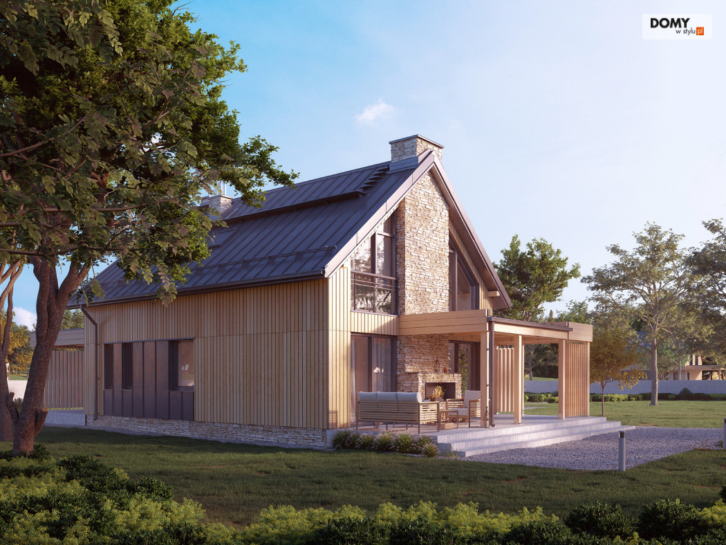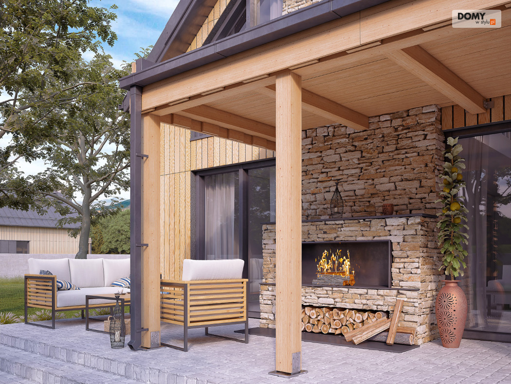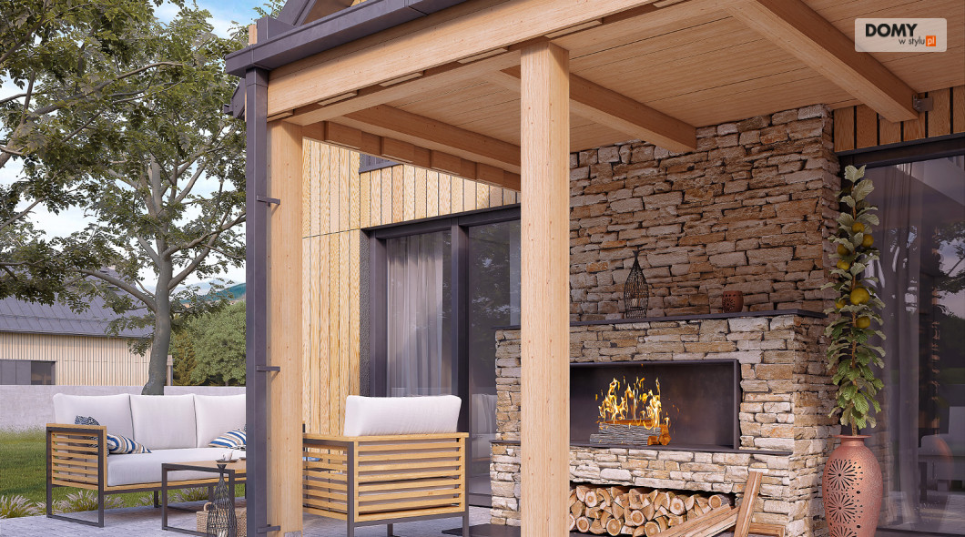 Weranda dr-s to projekt domu z poddaszem użytkowym, zaprojektowany w konstrukcji szkieletowej. W projekcie istnieje wyraźny podział na część dzienną i nocną. Na parterze znajduje się otwarta kuchnia, jadalnia z dużymi przeszkleniami oraz salon z kominkiem. Układ funkcjonalny parteru dopełnia łazienka, pralnia i kotłownia. Na poddaszu znajdują się trzy wygodne sypialnie oraz rodzinna łazienka. Istotnym elementem projektu domu jest antresola nad salonem, która podkreśla charakter wnętrza. Atutem projektu jest taras przykryty drewnianą pergolą, na którym zaprojektowano zewnętrzny kominek.