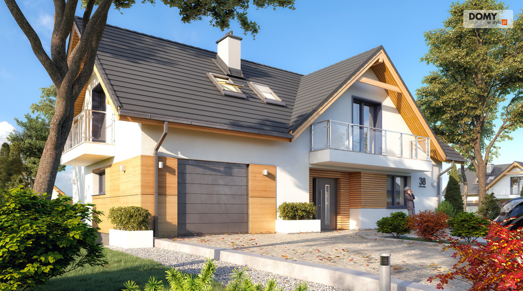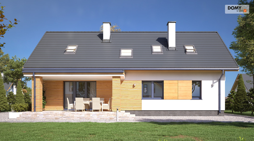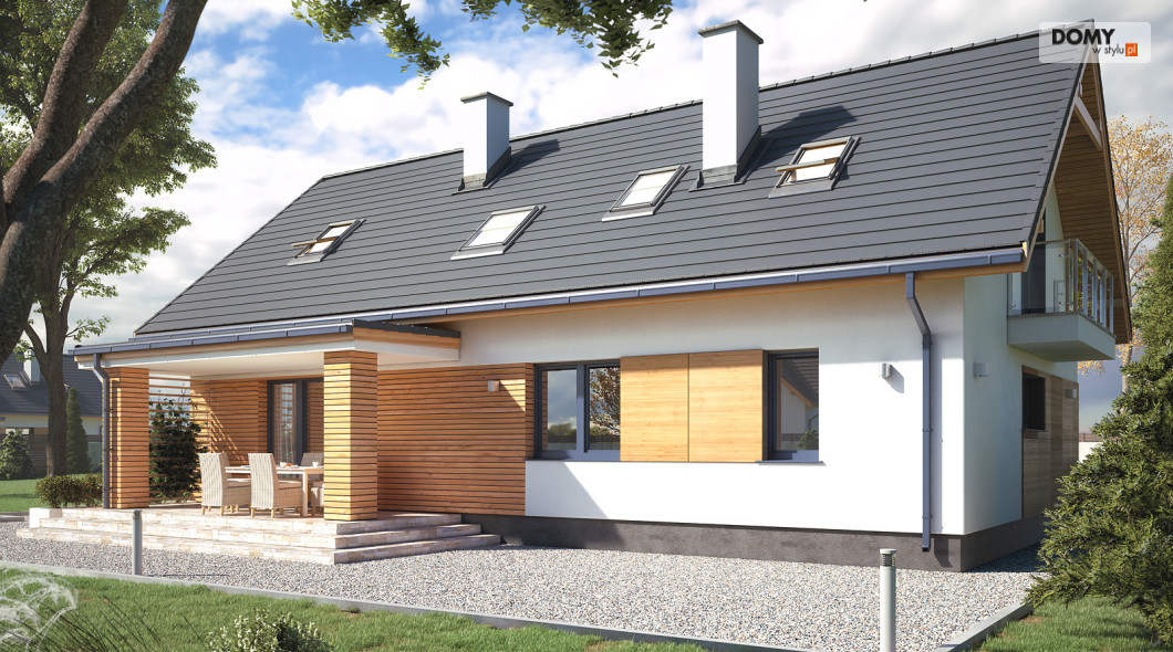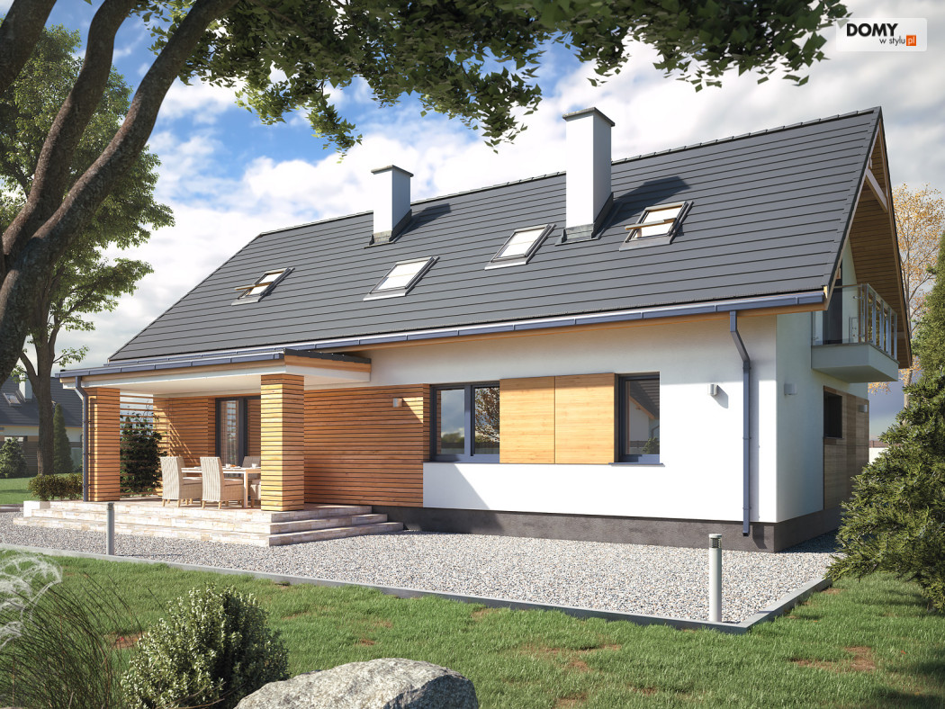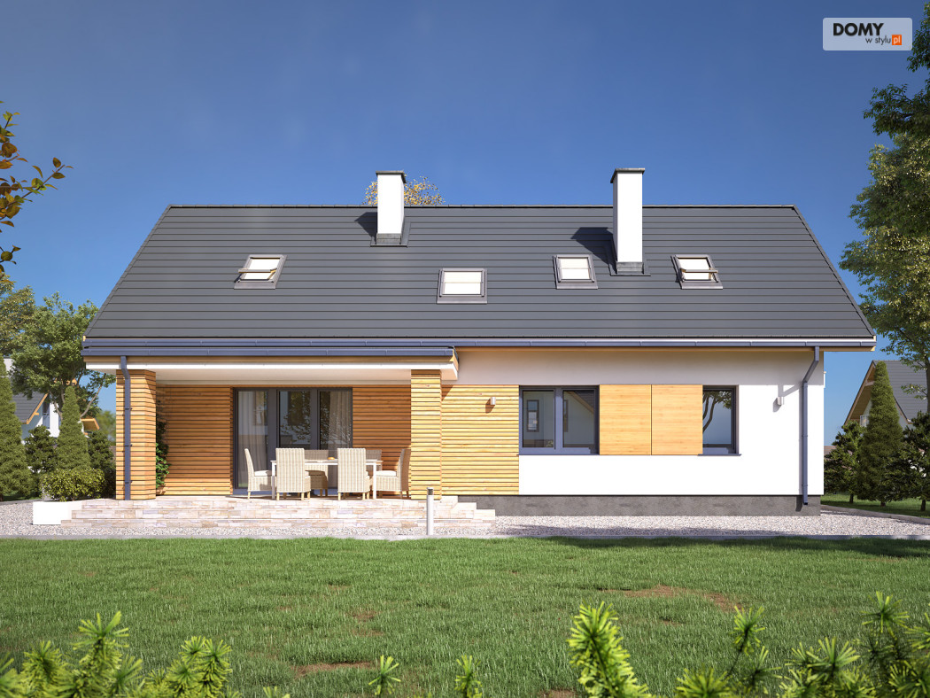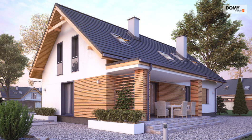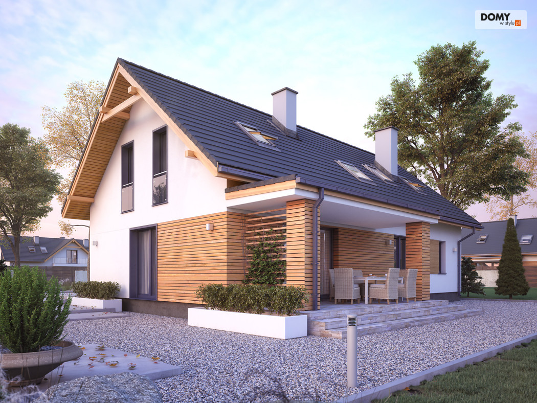 Sekwana to nowoczesny projekt domu z użytkowym poddaszem i jednostanowiskowym garażem. Prosta, wpisana w prostokąt bryła z dwuspadowym dachem została podkreślona efektownymi elewacjami. Od strony ogrodu zaprojektowano zadaszony taras, co także wpływa na atrakcyjny wygląd domu. W strefę dzienną zaplanowaną na parterze wpisuje się kuchnia ze spiżarnią oraz przestronny salon. Komunikację ułatwia przestronny wiatrołap, który łączy garaż ze strefą dzienną. Dodatkowo na parterze zaprojektowano pokój, łazienkę oraz dostępną z garażu kotłownię. Przestrzeń pod schodami została wykorzystana na niewielką garderobę. Poddasze to strefa nocna. Zaplanowano tu dwie sypialnie z garderobami oraz łazienkę. Na poddaszu znajduje się także sypialnia gospodarzy z prywatną garderobą oraz łazienką.