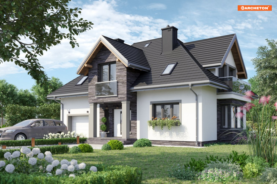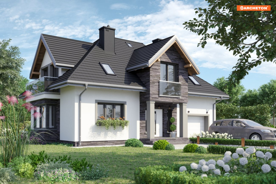Projekty z Rodziny Zoltana proponują budowę średniej wielkości parterowych domów z dwupoziomowym mieszkaniem oraz zespołem garażu i kotłowni. Wykorzystano w nich całe poddasze nad dwuczęściowym budynkiem, tak jak w zbliżonych rozwiązaniach z rodzin Heleny czy Zofii. Projekt domu Zoltan Karo jest największy w rodzinie i jako jedyny ma czterospadowy dach z dużymi lukarnami w każdej połaci. Tak jak w bardzo zbliżonej wersji Atu, do rzutu prostszego Zoltana dodano na parterze dwa ryzality: z jadalnią w ścianie bocznej oraz z gabinetem przy salonie w elewacji ogrodowej. Pokój dzienny jest otwarty ale z wyraźnie zaznaczoną kuchnią. Parter uzupełnia jasna łazienka oraz przejście pod schodami do części gospodarczej. Na poddaszu są cztery wygodne sypialnie, przestronny pokój kąpielowy oraz pralnia. Główną sypialnię, z własną łazienką i garderobą, oddziela różnica poziomów. Lukarny w dachu akcentują osie symetrii elewacji, przy czym frontowa lukarna spoczywa na słupach podcienia wejściowego, a dwie z nich w elewacjach bocznych mają balkony. Od Zoltana Atu projekt domu Zoltan Karo oprócz kształtu dachu odróżnia dłuższy o 1m plan i nieco większa powierzchnia.