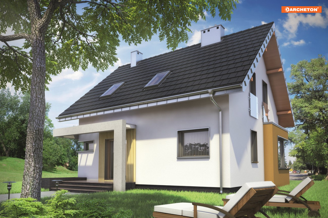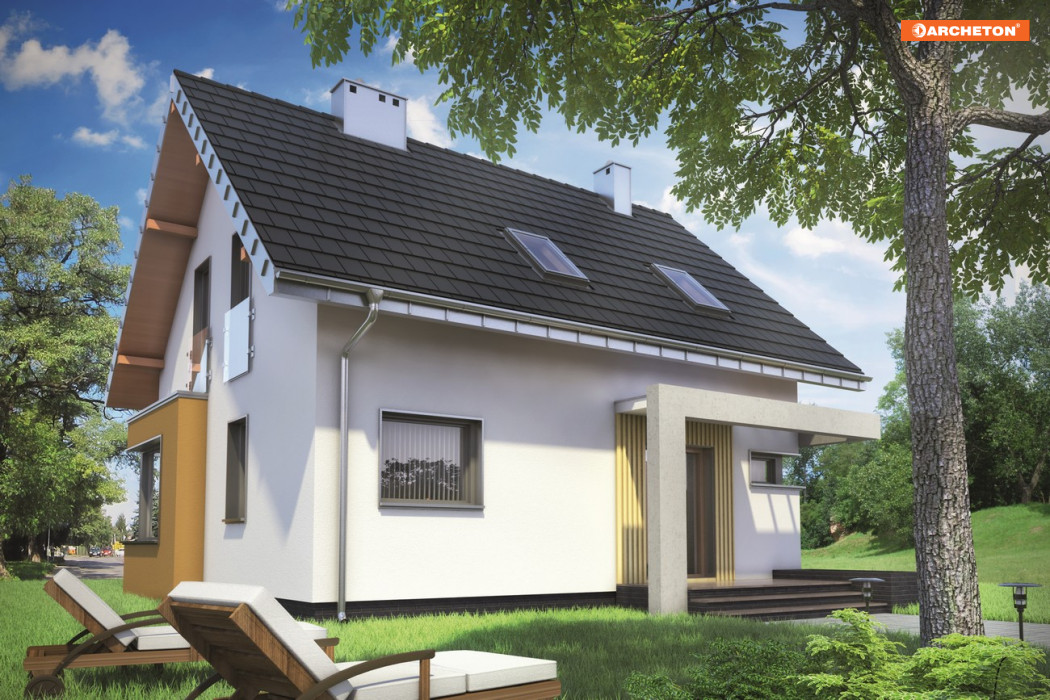 Energooszczędną bryłę niewielkiej Lizy przykrywa ekonomiczny dwuspadowy dach. Na parterze ulokowano otwartą strefę dzienną z kotłownią i wygodnym wiatrołapem, a na poddaszu trzy sypialnie z łazienką dla 4 osób. Brak balkonów skompensowany został możliwością otwarcia pomieszczeń na ogród za pomocą okien balkonowych, zabezpieczonych przejrzystą balustradą.