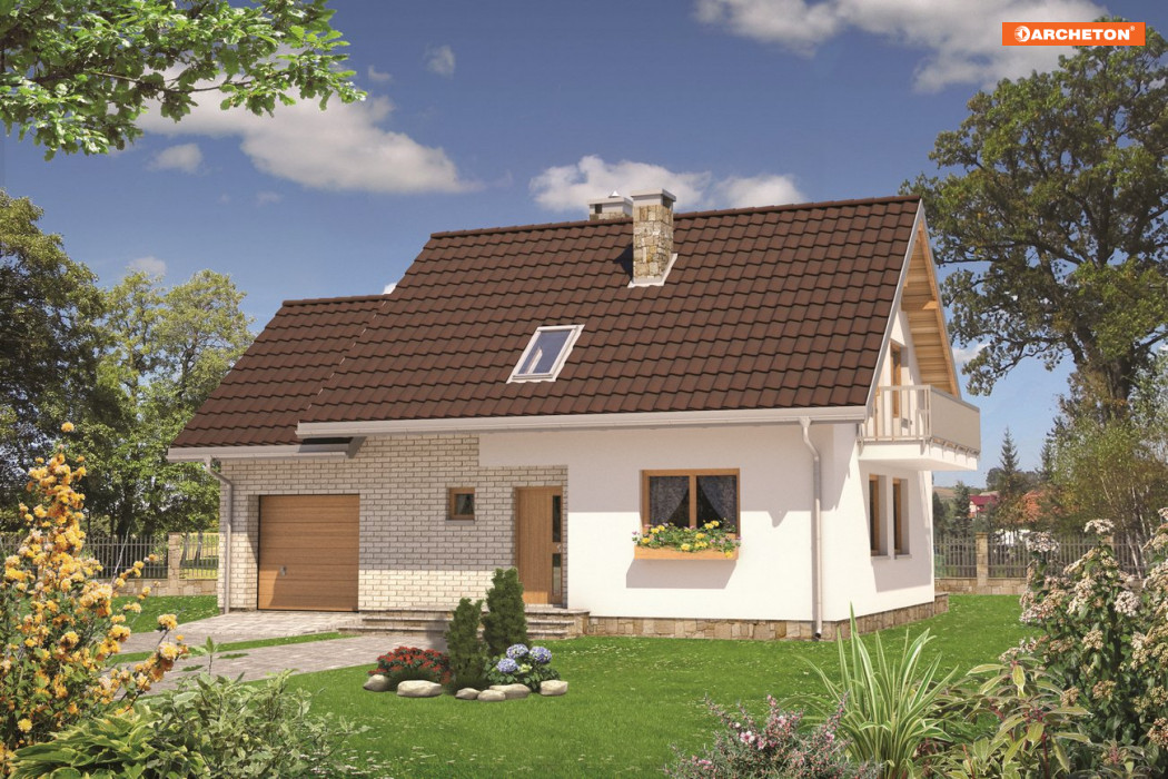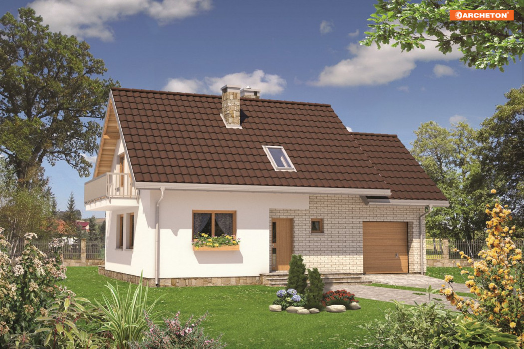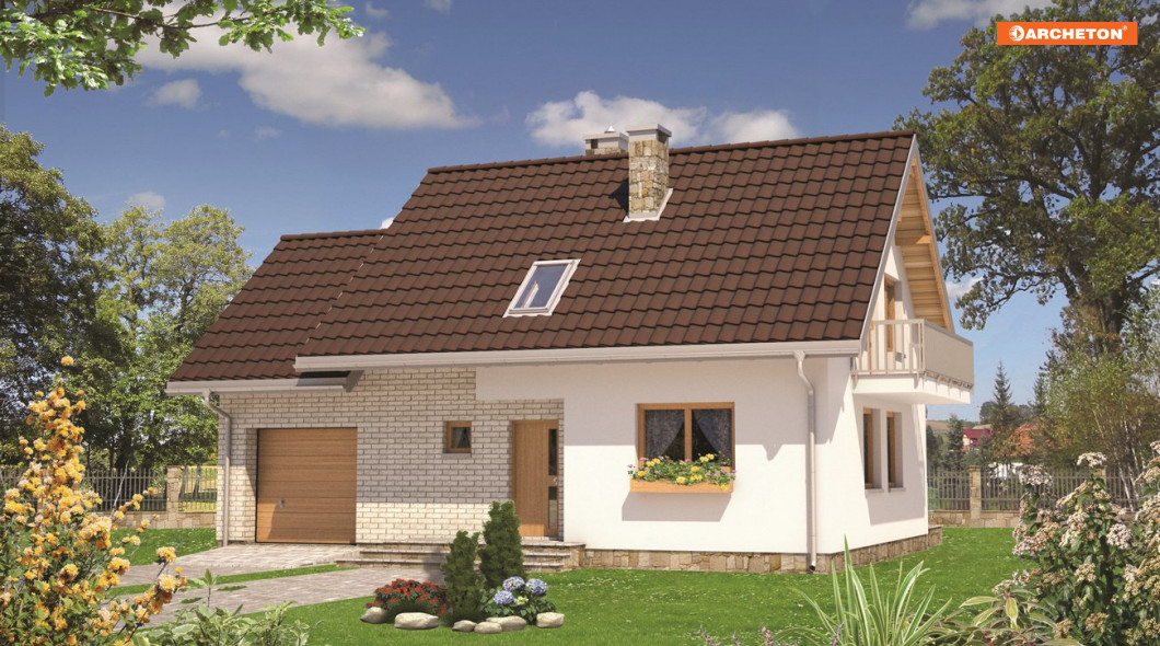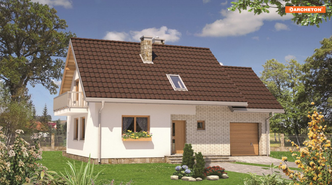 Inwestorzy, mający w planach budowę domu o powierzchni ok. 100m2, są w uprzywilejowanej sytuacji. Projekty domów z użytkowym poddaszem o tej wielkości prezentują liczne i zróżnicowane rozwiązania. Projekt domu Czaruś ma, wśród nich, najprostszą sylwetkę z dobudowanym garażem i z dodatkową przestrzenią mieszkalną na jego poddaszu. Przy dwuspadowym, nieskomplikowanym dachu bez lukarn i przy braku balkonów, taki układ gwarantuje ekonomiczną budowę i energooszczędne użytkowanie mieszkania.