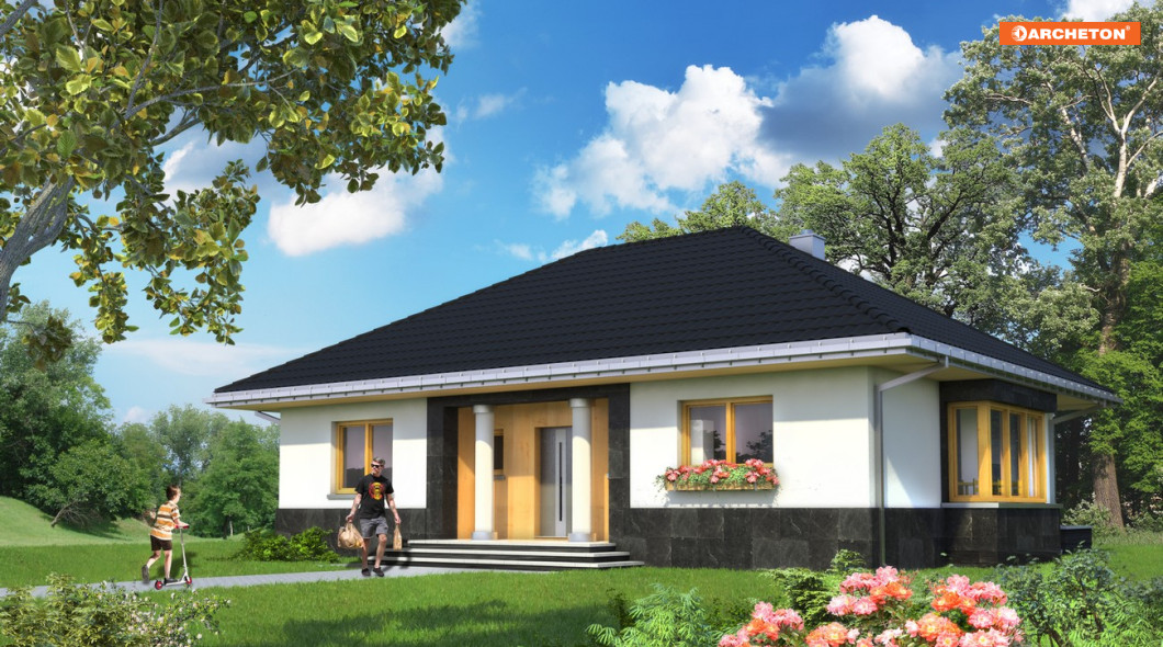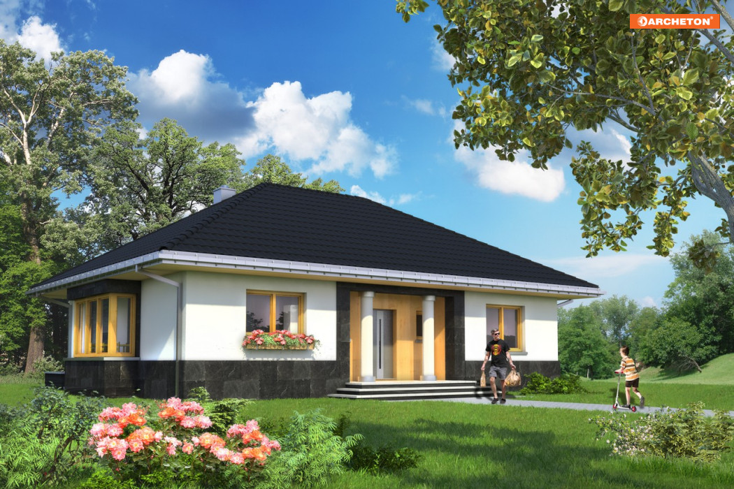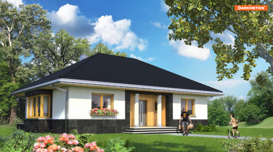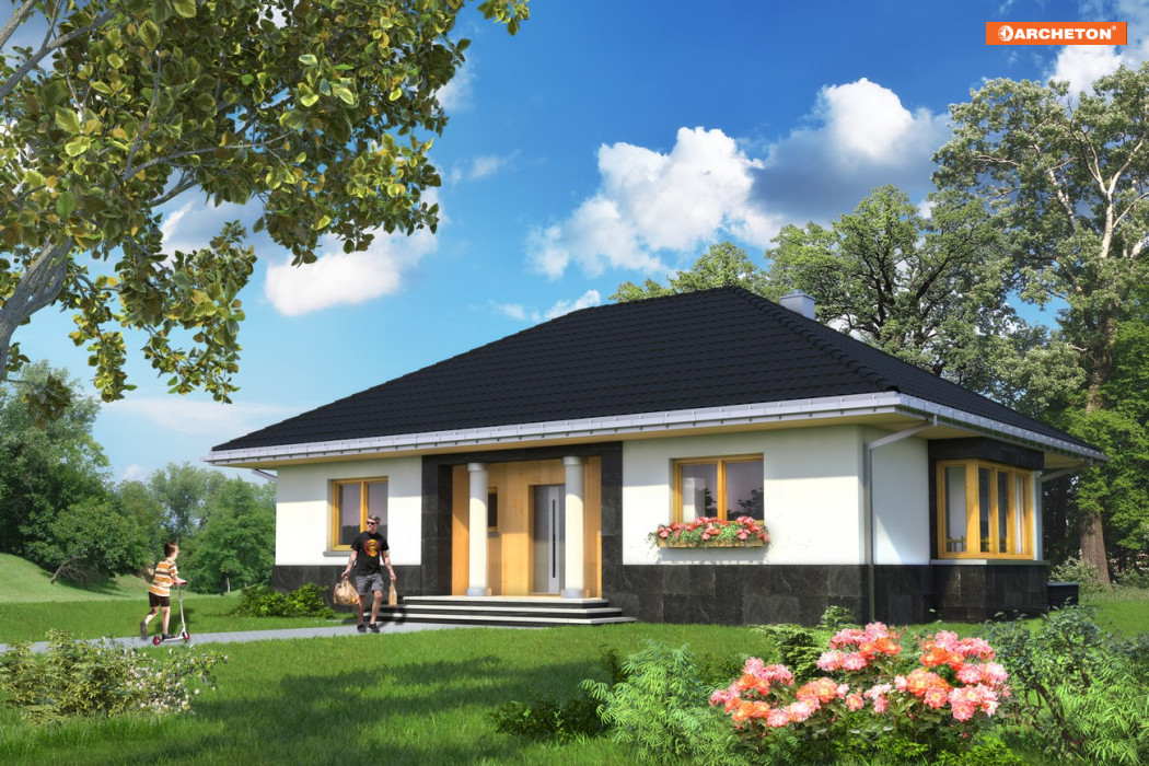 Znakiem rozpoznawczym domów z rodziny Amadeja jest cienista wnęka z kolumnami po bokach wejścia, umieszczona na osi symetrii elewacji frontowej. Projekt domu Amadej Piano jest wariantem parterowym, z najmniej stromym dachem i skromniejszą powierzchnią. Dlatego, pod względem wielkości, znajduje się w grupie domów z nieużytkowym poddaszem, bez garażu o powierzchni ok. 100m2, z Aleksandrią Rex, Mileną i Leną Bobo. Wszystkie te propozycje mają, tak jak rodzina Amadeja, rzut na planie prostokąta z czterospadowym dachem. Oferują różne wersje rozkładu otwartej strefy dziennej i trzech sypialni. Mają też odmiennie zbudowane bryły: Amadej Piano i Aleksandria nawiązują do historycznego rygoru symetrii i do dekoracyjnego ornamentu, podczas gdy elewacje Leny i Mileny są nowoczesne i swobodne. Projekt domu Amadej Piano, oprócz frontowego detalu, zwraca również uwagę wyjątkowo głębokim okapem. Mieszczą się pod nim całkowicie ryzality w ścianach bocznych: z jadalnią między kuchnią i salonem oraz z kotłownią, na końcu przedpokoju od strony strefy nocnej.