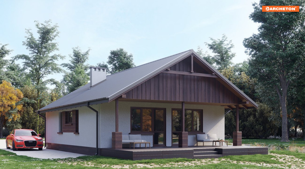 Na parterze znajdują się: pokój dzienny, 2 pokoje sypialne, kuchnia z miejscem do jedzenia, łazienka, spiżarnia i kotłownia.
