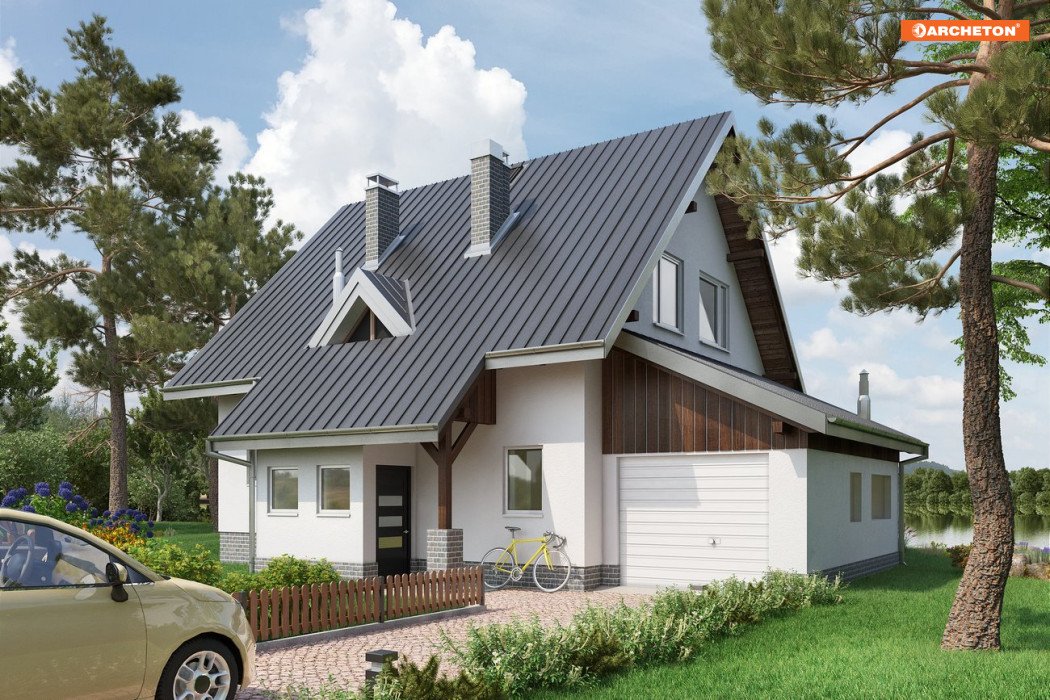Wejście przez wiatrołap. Po prawej stronie kotłownia. Po kilku stopniach wchodzi się do holu, skąd na wprost znajduje się pokój dzienny. Po lewej stronie znajduje się kuchnia i spiżarka, a po prawej pokój i łazienka. Na poddaszu 3 pokoje, łazienka i garderoba. Do budynku jest dostawiony garaż. Do Rodziny Kraba należą ekonomiczne domy parterowe z użytkowym poddaszem z zakresu powierzchni 90-120m2. Podobnie jak Fiona i Amelia wykorzystują działkę z lekkim spadkiem ku wjazdowi. Do części mieszkalnej, przekrytej dwuspadowym dachem o kalenicy równoległej do drogi dojazdowej, przylega garaż z pulpitową połacią. Razem z wejściem do domu, sienią i sporą kotłownią ulokowano go niżej o 90cm w stosunku do poziomu parteru. Wysunięty przedsionek przekryto, wraz z podcieniem na słupie, przedłużoną połacią głównego dachu z trójkątną lukarną doświetlającą klatkę schodową. W najmniejszym projekcie domu Krab, jak we wszystkich wersjach, salon i dodatkowy pokój można połączyć w większe pomieszczenie, tradycyjnie oddzielone od kuchni i holu z łazienką ścianą nośną. Ulokowanie schodów w środku części frontowej pozwala racjonalnie rozwiązać poddasze i zminimalizować powierzchnię komunikacji. Trzy sypialnie dla czterech osób i łazienka są dzięki temu wygodne i foremne. Rodzina Kraba proponuje różne wielkości domu rozplanowanego w taki sam sposób na rzucie, który od proporcji kwadratu w projekcie niepodpiwniczonego domu Krab, rośnie wzdłuż kalenicy