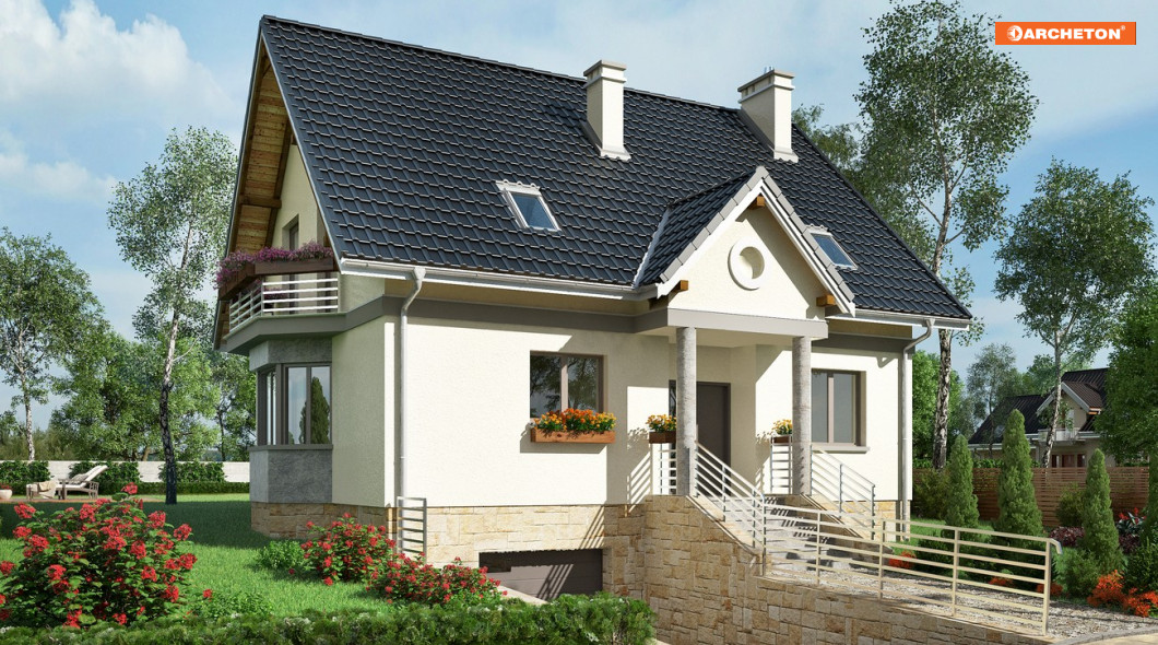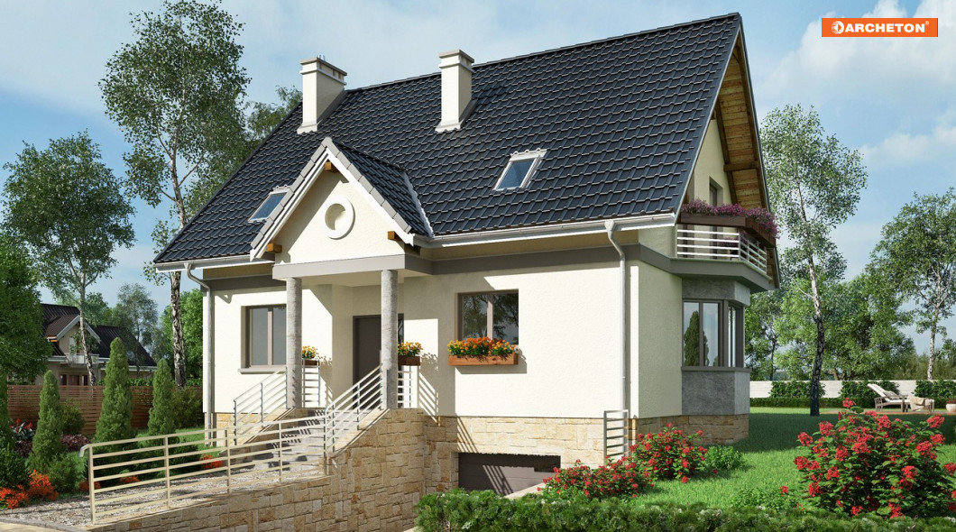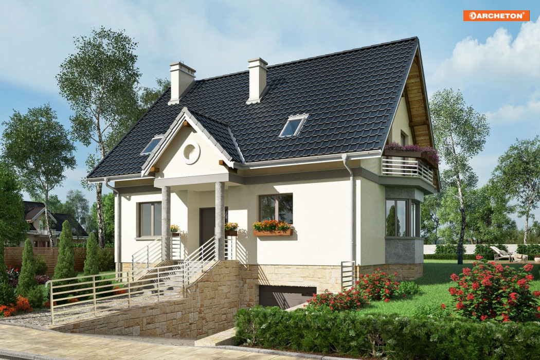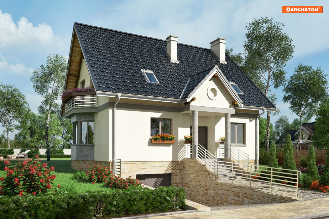 Do Rodziny Sonii należą projekty małych domów parterowych z użytkowym poddaszem i z garażem, na rzucie zwartego prostokąta. Całą rodzinę wyróżniają dwa detale architektoniczne: wejściowy ganek, najczęściej z daszkiem na słupkach lub kolumnach oraz ryzalit na planie ośmiokąta z jadalnią, zwieńczony balkonem w jednej ze ścian bocznych. Szczególną cechą projektu domu Sonia Midi (i także podpiwniczonej, choć sporo mniejszej Sonii Mini) jest rzadko spotykany układ funkcjonalny parteru. Oprócz całkowicie otwartej kuchni i salonu z kominkiem, przewiduje on aż dwa dodatkowe, niewielkie pokoje z łazienką. Oddzielono je od strefy dziennej traktem wejścia frontowego i komunikacji. Bardziej prywatną strefę nocną zaprojektowano podobnie we wszystkich pozostałych wersjach rodziny: z dużą łazienką i z garderobą na drugiej kondygnacji pod dwuspadowym dachem. Sypialnie doświetlono ekonomicznie i energooszczędnie – bez użycia lukarn. Projekt domu Sonia Midi ma garaż, dużą kotłownię i pomieszczenia gospodarcze w zajmującej pełen plan budynku piwnicy. Od projektu Sonia Midi Lux odróżnia go jedynie rodzaj betonu komórkowego użytego na ściany.
