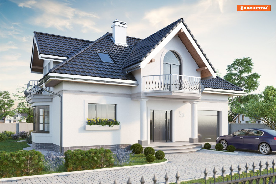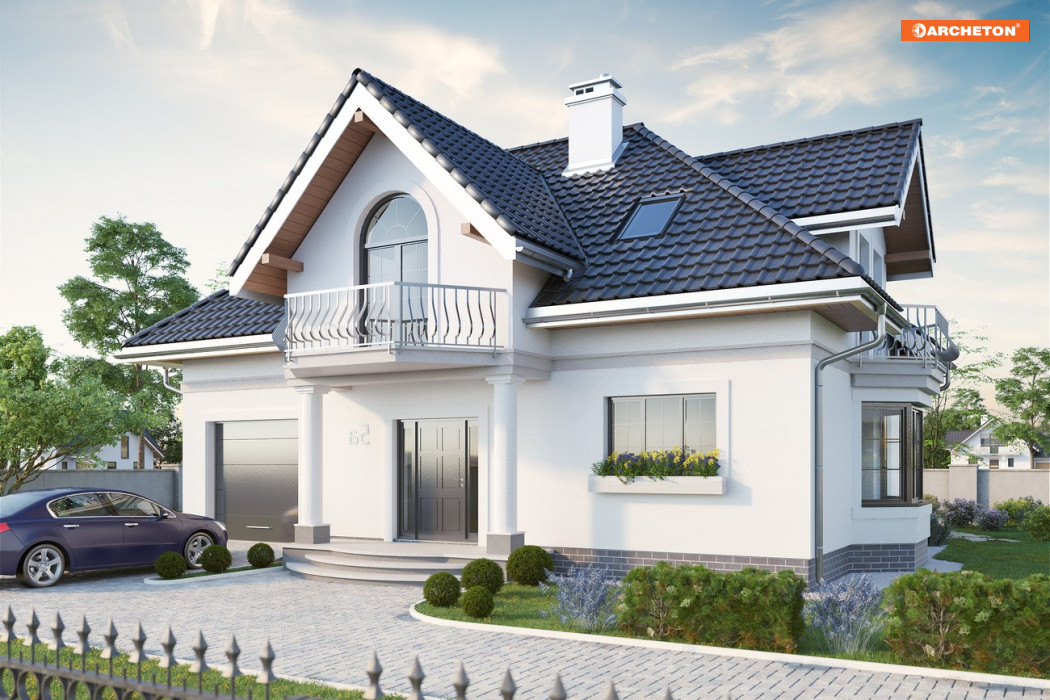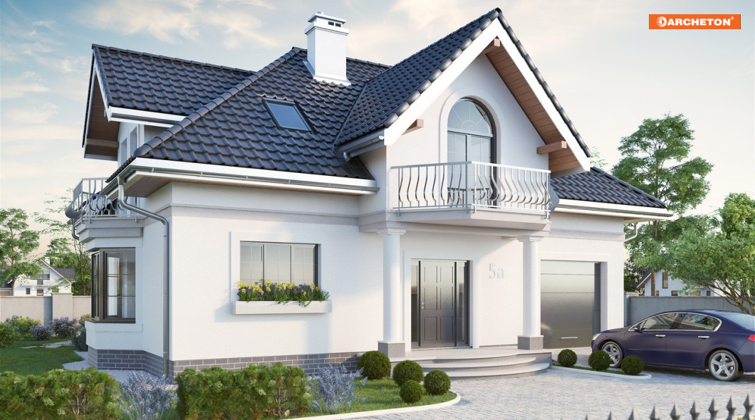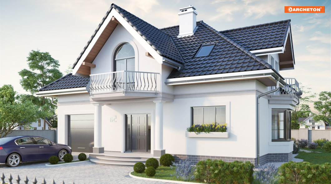 Projekty domów średniej wielkości z użytkowym poddaszem z Rodziny Dymszy charakteryzuje zwarta bryła i jeden dach dla części mieszkalnej i garażowej. Energooszczędny prostopadłościan urozmaica efektowna lukarna od frontu, wsparta na słupach oraz balkony. Projekty różni wielkość pomieszczeń, kształt dachu i wariantowanie fragmentów planu. Projekt domu Dymsza Karo jest średnim w rodzinie, a przy tym mniejszym z dwóch wersji o czterospadowym dachu z lukarnami w każdej połaci. We wszystkich rozwiązaniach Dymszy parter podzielono konstrukcyjnie i funkcjonalnie na mieszkalną strefę dzienną oraz na część gospodarczą. Otwarta kuchnia jest wyraźnie zaznaczona i łączy się z salonem przez jadalnię umieszczoną w ryzalicie jednej ze ścian bocznych Przestrzeń pod schodami wykorzystana została w projekcie domu Dymsza Karo na schowek przy małym gabinecie, a połączenie z garażem i dużą kotłownią przewidziano w sieni. Poddasze przewiduje 4 pokoje i łazienkę. Zaprojektowano tu wyjątkową w Rodzinie Dymszy garderobę przy głównej sypialni, ulokowaną w jednej z czterech lukarn. Wsparta słupami nad wyjściem z salonu stanowi jednocześnie osłonę tarasu ogrodowego.