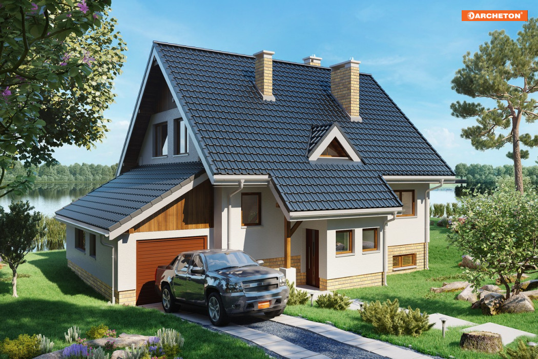 Do Rodziny Kraba należą ekonomiczne domy parterowe z użytkowym poddaszem z zakresu powierzchni 90-120m2. Podobnie jak Fiona i Amelia wykorzystują działkę z lekkim spadkiem ku wjazdowi. Do części mieszkalnej przekrytej dwuspadowym dachem przylega garaż z pulpitową połacią, który, wraz z wejściem do domu, ulokowano niżej o 90cm w stosunku do poziomu parteru. W największym projekcie domu Krab 3 wysunięty przedsionek przekryto, wraz z podcieniem na słupie, przedłużoną połacią głównego dachu z trójkątną lukarną doświetlającą klatkę schodową. Salon i dodatkowy pokój są tradycyjnie oddzielone od kuchni i strefy wejścia (z łazienką i garderobą) ścianą nośną. Umieszczenie schodów w środku części frontowej pozwala na racjonalne rozplanowanie poddasza i zminimalizowanie powierzchni komunikacji. Trzy sypialnie, łazienka i pralnia są dzięki temu wyjątkowo obszerne i foremne. Projekty z rodziny Kraba proponują różne wielkości domu rozplanowanego w taki sam sposób na rzucie, który, od proporcji kwadratu w wersji Krab, rośnie wzdłuż kalenicy. Projekt domu Krab 3, o najbardziej wydłużonym planie, przewiduje częściowe podpiwniczenie mieszczące dużą kotłownię.