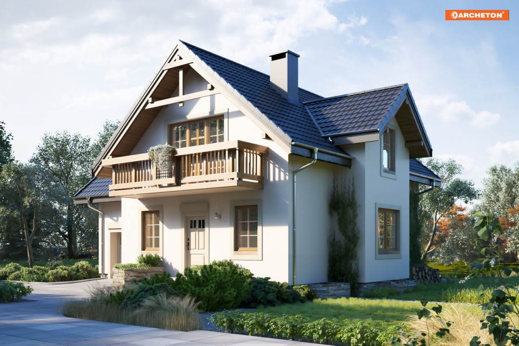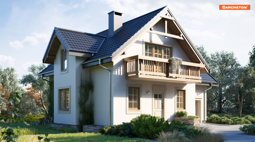 W Rodzinie Koliby znalazły się małe i średnie domy parterowe z użytkowym poddaszem zaprojektowane na planie litery T. Wejście zwrócone jest do wjazdu szczytem dwuspadowego dachu. Parter wyższej części mieszkalnej zajmuje otwarta przestrzeń wspólna, w której jednak wyraźnie wydzielono od frontu kuchnię oraz salon z otwarciem na ogród. Łącząca je w ścianie bocznej jadalnia osłonięta jest od strefy wejścia i schodów wbudowaną szafą. Projekt domu Koliba Grota jest średni w rodzinie i proponuje kotłownię w piwnicy pod częścią budynku oraz dużą jasną łazienkę przy sieni. Pozostałe warianty (o powierzchniach aż do ok. 140m2) różnie rozwiązują lokalizację kotłowni oraz połączenie mieszkania z garażem znajdującym się w niższym, prostopadłym skrzydle. Wszystkie wersje mają dwupoziomowe poddasze z czteropokojową strefą prywatną. Na głównym poziomie są trzy sypialnie z balkonami akcentującymi front i taras ogrodowy. Projekt domu Koliba Grota, tak jak wszystkie wersje, w tym najbardziej zbliżona wielkością i układem funkcji lecz niepodpiwniczona Koliba Rex, wyróżnia wysoki ryzalit w ścianie bocznej, który powiększa jadalnię oraz łazienkę z lukarną na poddaszu.