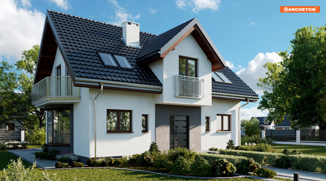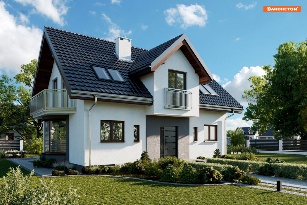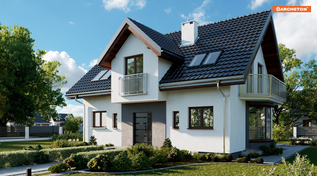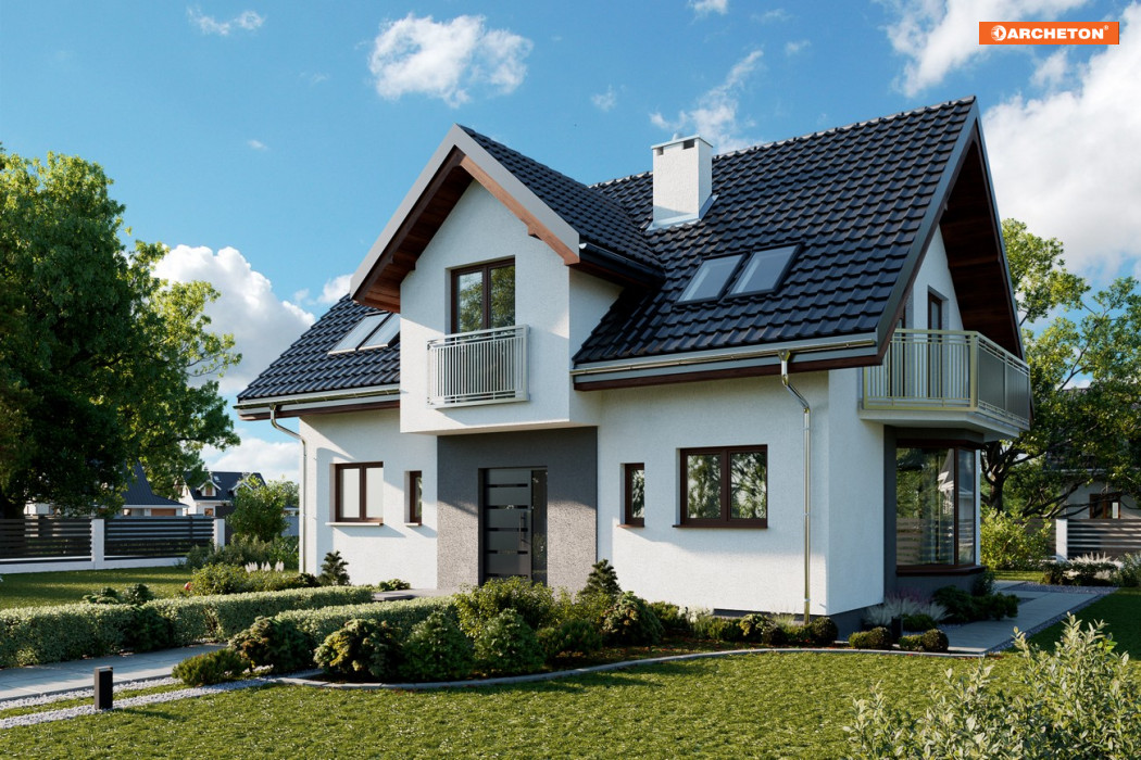 Projekt domu TYTUS powstał z myślą o tych inwestorach, którym podoba się elegancka sylwetka projektów, ale poszukują domu większego i wolą oddzielenie garażu od bryły domu. Tytus proponuje wyrównanie poziomu całego poddasza i obszerną sypialnię z łazienką zamiast garażu na parterze. Dekoracyjny ryzalit, zwieńczony balkonem, powtórzony został symetrycznie w drugiej szczytowej ścianie bocznej. Dzięki temu projekt nabrał jeszcze więcej klasycznej harmonii. Zagospodarowanie działki, polegające na budowie wolno stojącego garażu, bywa nie tyle kwestią preferencji inwestora, ale czasem jest rozwiązaniem jedynym możliwym do zastosowania. Dzieje się tak np. w sytuacji wydłużonego czy nietypowego kształtu i niewielkiej szerokości parceli. Wszystkim posiadaczom takich „trudnych” działek przypominamy, że w ofercie Archetonu, na stronie internetowej, wybrać można odpowiedni projekt budynku garażu. Są projekty jedno- i dwustanowiskowe, z częścią gospodarczą i mieszkalną różnej wielkości.