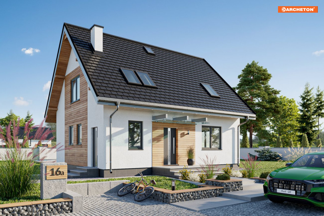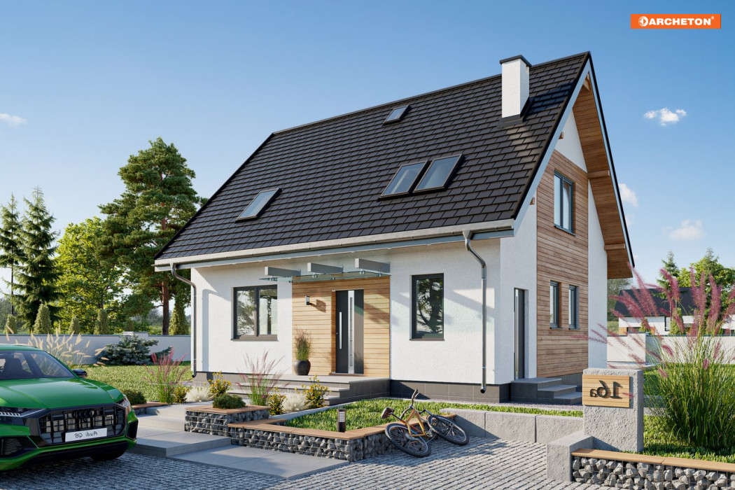 Projekt domu Sambor Eko prezentuje średnią wielkość w Rodzinie Sambora, w której skład wchodzi kilka projektów niewielkich, niepodpiwniczonych domów z użytkowym poddaszem. Jest to grupa koncepcji bardzo ekonomicznych w realizacji, z energooszczędnym, zwartym rzutem i dwuspadowym, prostym dachem. Układ kompletnego mieszkania na parterze (dodatkowy pokój oprócz salonu oraz pełna łazienka) i trzech kolejnych pokoi z łazienką na poddaszu ułatwia etapowanie budowy. Stosunkowo duża kotłownia daje swobodę wyboru sposobu ogrzewania budynku. Wszystkie domy z Rodziny Sambora proponują bardzo otwarty, nowoczesny charakter strefy dziennej. Z wyjątkiem Sambora Mobil (111 m2), nie przewidują w swojej bryle garażu. W projekcie domu Sambor Eko zrezygnowano z balkonu i zastosowano min. zwiększone grubości ocieplenia przegród budowlanych, co pozwoliło osiągnąć ponadstandardowe parametry termoizolacyjności. Nowoczesność rozwiązań podkreśla zmieniony, w stosunku do innych wariantów rodziny, detal przejrzystego frontowego daszku.