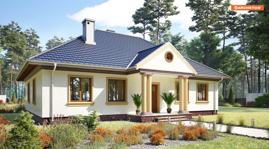 Ponadczasowa elegancja, szyk i rozmach zamknięte w prostej bryle – to znaki szczególne, które wyróżniają dom parterowy z dachem kopertowym Aleksandria Bona spośród innych jednokondygnacyjnych budynków.