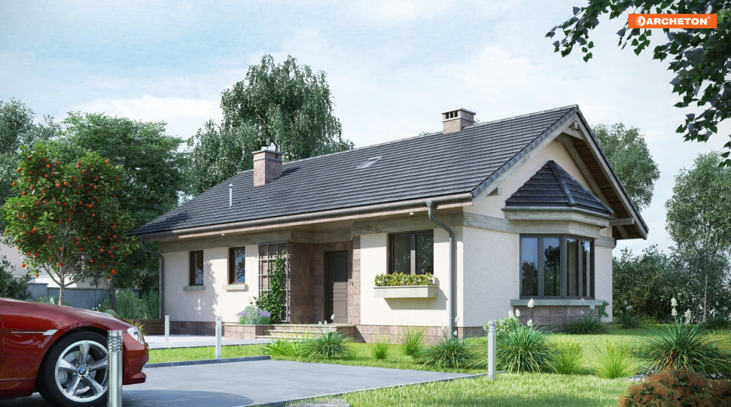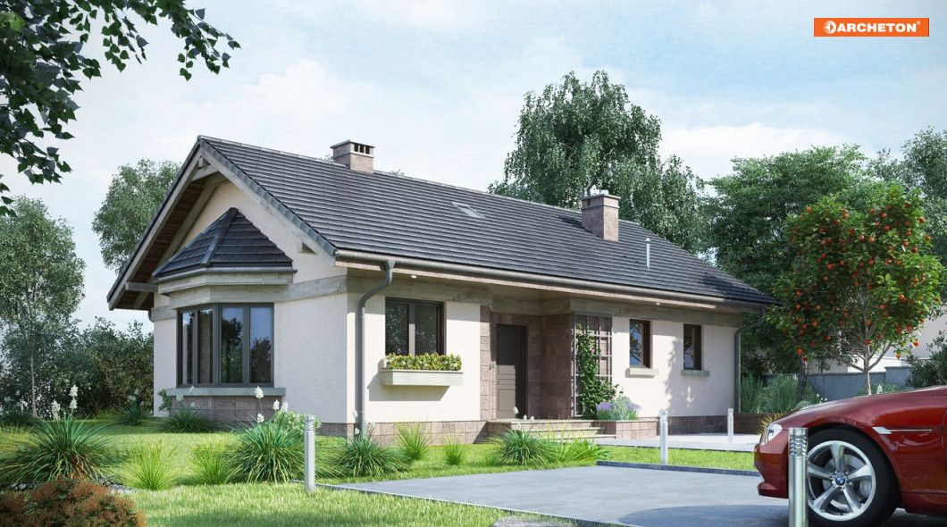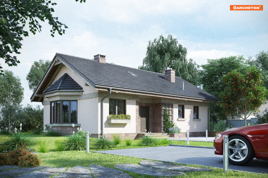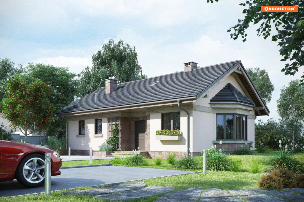 Projekt domu Nuta jest jednym z kilku parterowych, niepodpiwniczonych propozycji Archetonu o powierzchni użytkowej ok. 80m2, bez garażu. Zbudowany na planie wydłużonego prostokąta, z dwuspadowym, niezbyt stromym dachem, należy do rozwiązań z wejściem frontowym we wnęce elewacji równoległej do kalenicy. Tak jak w podobnej Agacie postawiono na wygodę przestrzeni w mniejszej ilości pomieszczeń (inaczej, niż w bardzo zbliżonej powierzchnią Alidzie - z trzema mniejszymi sypialniami i mniejszą kotłownią). Kotłownia Nuty jest wyjątkowo duża, jak na dom tej wielkości i, jak w Modrzyku, ma wyjście na zewnątrz. Ponadstandardowo przestronna jest także jedyna łazienka. Mieszkanie dysponuje dwoma sypialniami dla trzech osób oraz strefą dzienną z częściowo wydzielonymi: kuchnią ze spiżarnią i salonem. Łączy je otwarta na hol jadalnia w dekoracyjnym ryzalicie z daszkiem wysuniętym ze ściany bocznej i szczytu budynku. Znakiem rozpoznawczym projektu domu Nuta jest zaakcentowanie wejścia frontowego zapraszającym skosem jednej ze ścian podcienia. Nieco inny układ łazienki, kotłowni oraz trzecią sypialnię proponuje siostrzany projekt domu Nuta Karbo.