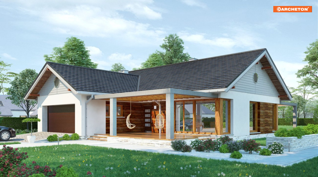 Projekt domu Telma i Telma Solis należą do propozycji budynków jednorodzinnych parterowych, średniej wielkości. Zwracają wśród nich uwagę wyrazistym planem w kształcie krzyża, z dwuspadowymi, przenikającymi się dachami o różnych rozpiętościach. Frontowe skrzydło z dwustanowiskowym garażem, skierowane jest bramą do wjazdu. Ażur pergoli na słupie prowadzi wzdłuż niego do obszernej sieni i dalej do głównej części mieszkalnej z dużym pokojem dziennym. W Telmie Solis, z myślą o działce zwróconej wjazdem na południe, odwrotnie niż w Telmie usytuowano kuchnię i salon, a kominek znalazł się w centrum, przy holu. Projekt domu Telma Solis proponuje też taras ogrodowy połączony z wejściowym w jedno duże, zacienione pergolą patio. Do pozostałych skrzydeł prowadzi z centralnej strefy wejściowej korytarz. Rozlokowano tu, identycznie jak w wariancie pierwotnym, cztery sypialnie, dwie łazienki i pralnię. Obszerna kotłownia dostępna jest z mieszkania przez sień i garaż. Razem z dwoma bliźniaczymi pokojami tworzy najkrótsze skrzydło w formie ryzalitu urozmaicającego wschodnią, boczna ścianę bryły.