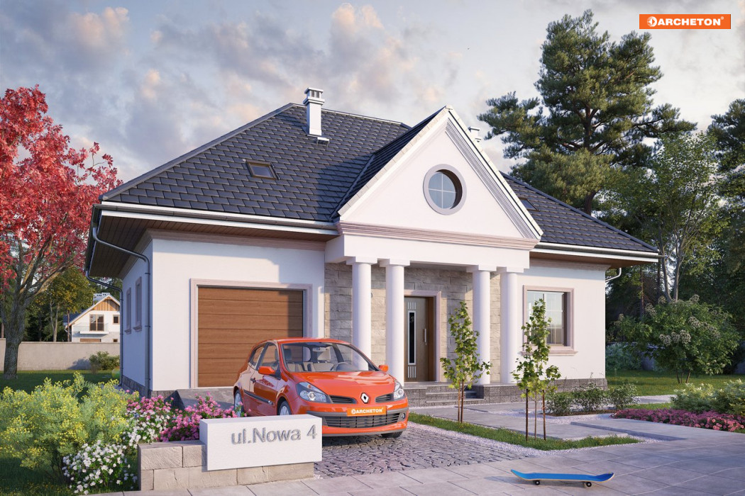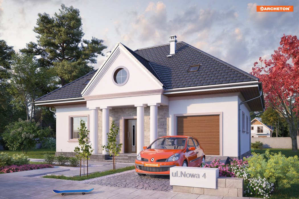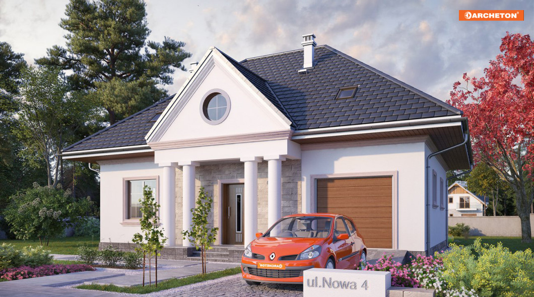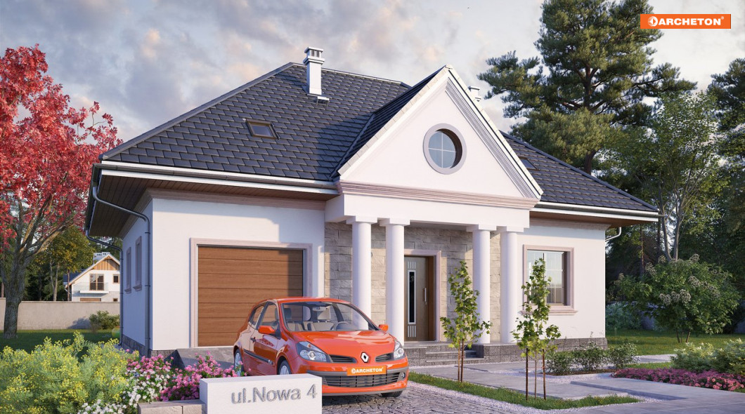 Projekt domu Gozdawa należy do grupy małych domów ale przewiduje stosunkowo obszerny pokój dzienny. Jest on zamknięty od holu i oddzielony od kuchni, co docenią to osoby preferujące tradycyjny układ mieszkania. Ten tradycjonalizm idzie, w przypadku tego projektu, w parze z tradycyjną bryłą nawiązującą czterospadowym dachem oraz detalem podcienia kolumnowego od frontu i ogrodu do architektury dworkowej. Przeciwnie do bardziej klasycznej Aleksandrii, Gozdawa mieści garaż i wykorzystuje poddasze, prezentując wyższą, mniej rozłożystą bryłę. Część mieszkalna na parterze obejmuje kuchnię, salon oraz duży hol z toaletą i wygodną sienią. Strefa nocna na drugiej kondygnacji składa się z trzech sypialni, z których dwie wyposażono w garderoby. Symetryczne, względem kalenicy, lukarny zaznaczają łazienkę i główną sypialnię z balkonem dodając pomieszczeniom wysokości użytkowej w miejsce mniej wygodnych skosów. Projekt domu Gozdawa stał się kanwą dla zbliżonych rozwiązań, które oferują zróżnicowany sposób wykorzystania drugiej kondygnacji (np. więcej pokoi w Gozdawie Polo), inną formę dachu (dwuspadowy w Gozdawie Pik) oraz nowoczesne detale w elewacjach.