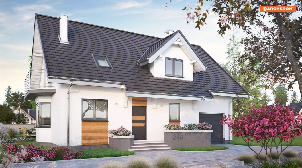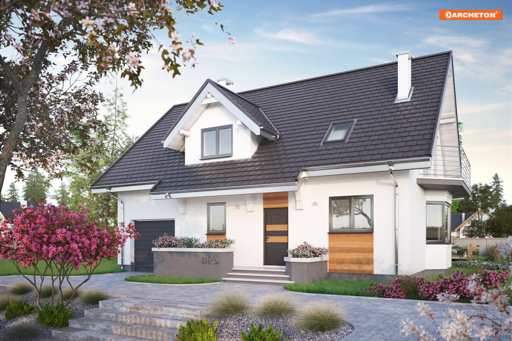 Zoja Lux to wygodny dom parterowy z użytkowym poddaszem z wbudowanym w bryłę budynku jednostanowiskowym garażem, przeznaczony dla 5-osobowej rodziny. Na parterze mieści się salon z jadalnią, kominkiem i wyjściem na taras, kuchnia ze spiżarnią, łazienka, pokój doskonały na dodatkową sypialnię lub gabinet oraz korytarz prowadzący do garażu i kotłowni. Na poddaszu usytuowana jest strefa nocna. Boczną elewację projektu domu Zoja Lux zdobi balkon zamknięty pękatymi balustradami, wieńczący wielokątny ryzalit, w którym usytuowana jest znajdująca się na parterze jadalnia.
