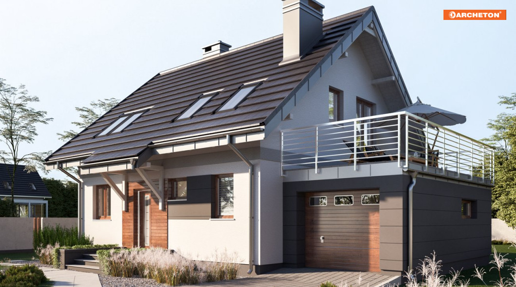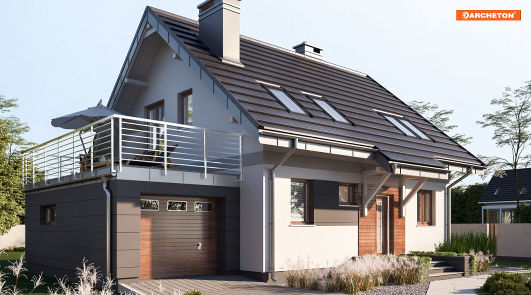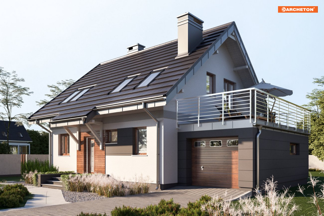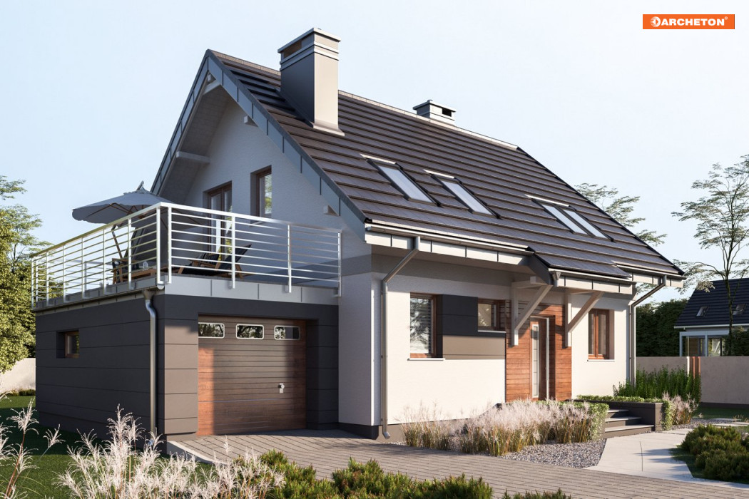Projekt domu Figa Neo reprezentuje architekturę najprostszą i najbardziej nowoczesną w rodzinie. Podkreśla to płaski dach nad garażem, zaprojektowany jako taras z lekką balustradą. Na wskroś nowoczesnym detalem ( charakterystycznym dla całej rodziny) jest także ażurowy ryzalit w ścianie ogrodowej. Wpuszcza mnóstwo światła do salonu i przybliża ogród do wnętrza domu. Duże przeszklenie jest nie tylko efektowne, ale absorbując darmową energię słońca pomaga realizować energooszczędne cele architektury.