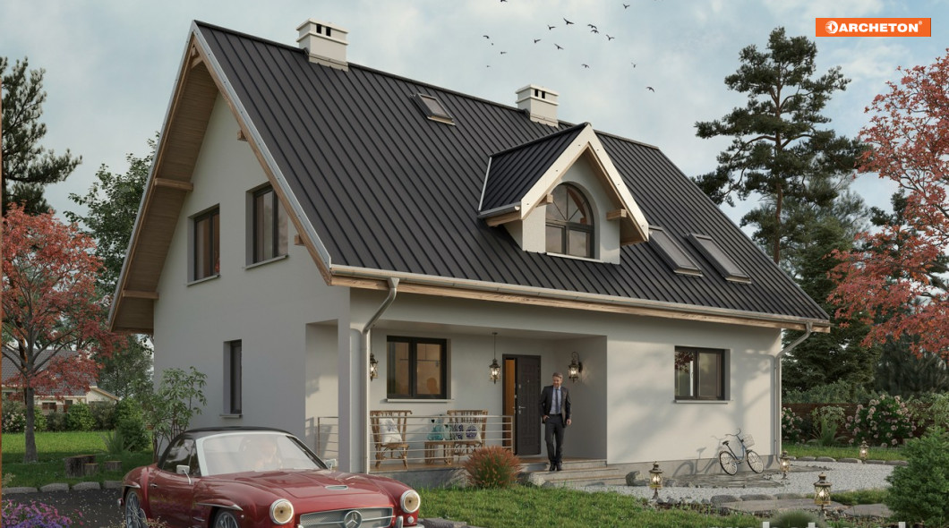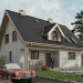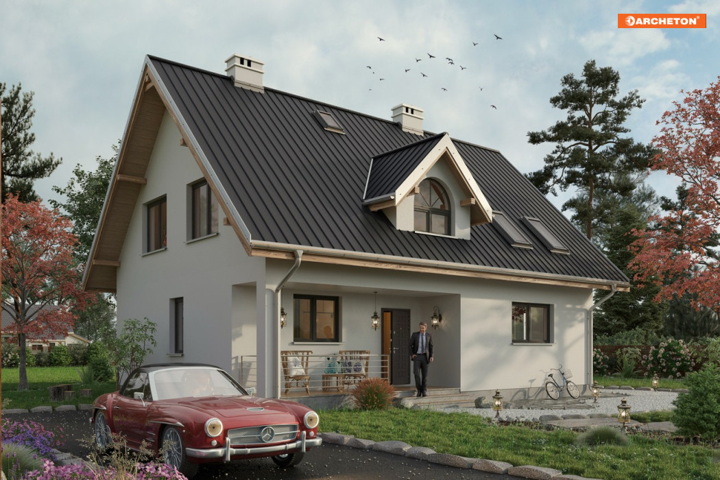 Według projektu domu Krzemyk Atu można zbudować dom średniej wielkości, z użytkowym poddaszem, bez garażu, o bardzo tradycyjnej sylwetce. Ma prostokątny rzut, dwuspadowy dach z kalenicą równoległą do drogi dojazdowej i proste detale. Są to: narożna wnęka wejściowa ze słupem i dwie małe lukarny z zamkniętym łukiem oknem w każdej z połaci. Program użytkowy wpisano w ekonomiczny układ trzech traktów konstrukcyjno - funkcjonalnych. Środkowy z nich zajmuje komunikacja, która rozdziela kuchnię z salonem od kotłowni, łazienki i dodatkowego pokoju. Pokój dzienny można zaaranżować jako mniej lub bardziej otwarte wnętrze. Trzy duże sypialnie na poddaszu wyposażono w wygodne wbudowane szafy kryjące kominy i oświetlono oknami o tradycyjnych proporcjach w symetrycznie rozrysowanych ścianach szczytowych oraz oknami dachowymi. Tylko garderoba przy łazience oraz schody mają niewielkie lukarny umieszczone na osi prostopadłej do kalenicy, akcentującej trakt wejściowy Prosta, masywna bryła bez balkonów projektu domu Krzemyk Atu nawiązuje do architektury małych miasteczek. Nieco mniejszą powierzchnię i wersję z garażem proponują inne warianty z Rodziny Krzemyka.