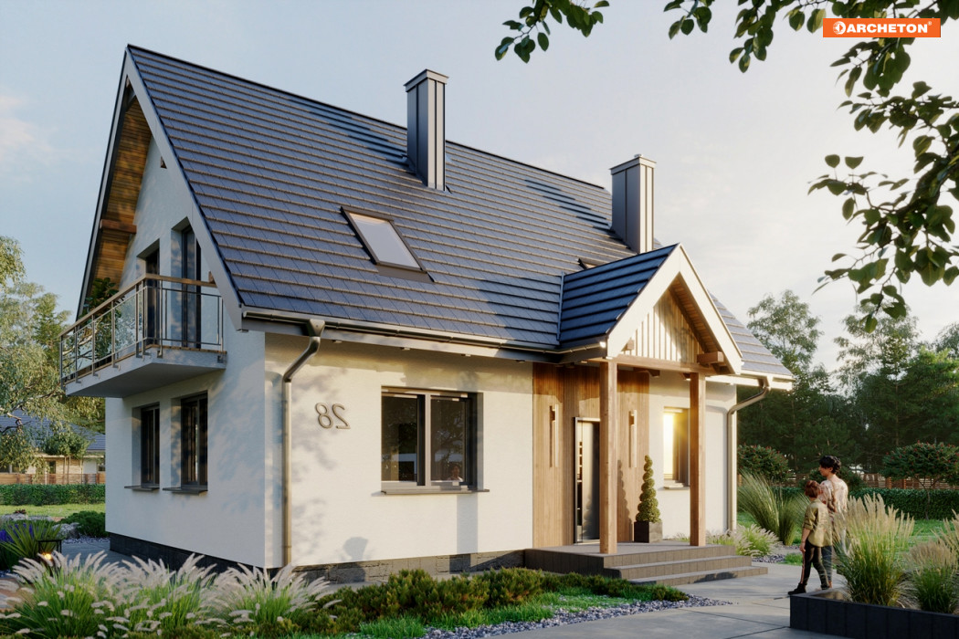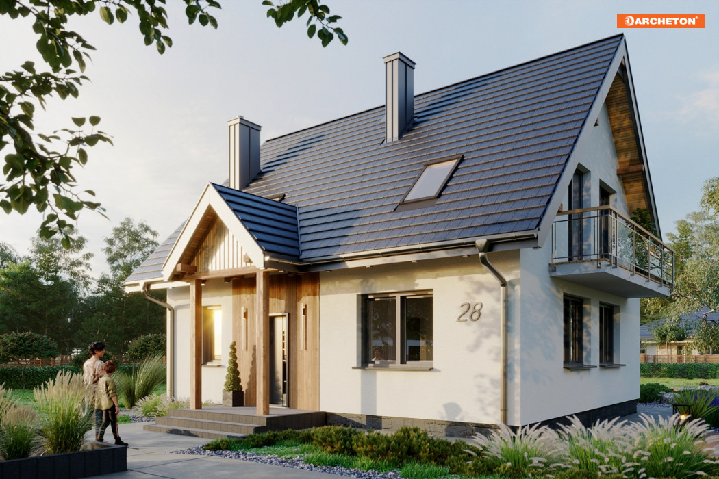 Sambor Mini prezentuje średnią wielkość w Rodzinie Sambora, w której skład wchodzi kilka projektów niewielkich, niepodpiwniczonych domów z użytkowym poddaszem. Jest to grupa bardzo ekonomicznych w realizacji projektów Archetonu, z energooszczędnym, zwartym rzutem, przekrytych dwuspadowym, prostym dachem. Układ pełnego mieszkania na parterze (dodatkowy pokój oprócz salonu oraz pełna łazienka) i trzech kolejnych pokoi z łazienką na poddaszu ułatwia etapowanie budowy. Stosunkowo duża kotłownia daje swobodę wyboru sposobu ogrzewania budynku. Najprostszy detal w projekcie domu Sambor Mini decyduje o elegancji architektury – znakiem rozpoznawczym sylwetki jest drewniany, niewielki ganek wejściowy. Wszystkie domy z Rodziny Sambora proponują bardzo otwarty, nowoczesny charakter strefy dziennej. Z wyjątkiem Sambora Mobil (111 m2), nie przewidują w swojej bryle garażu.
