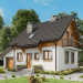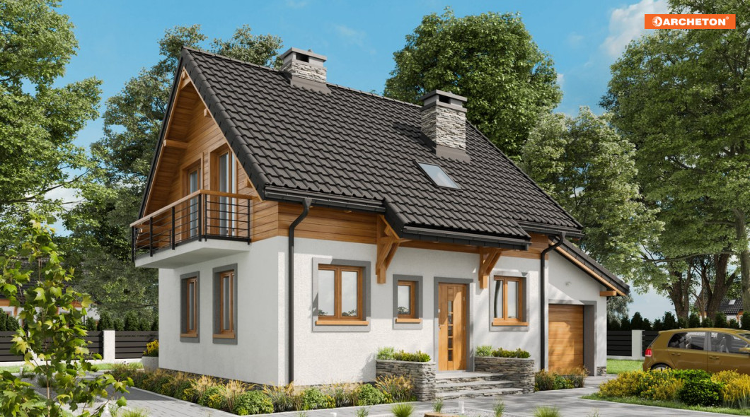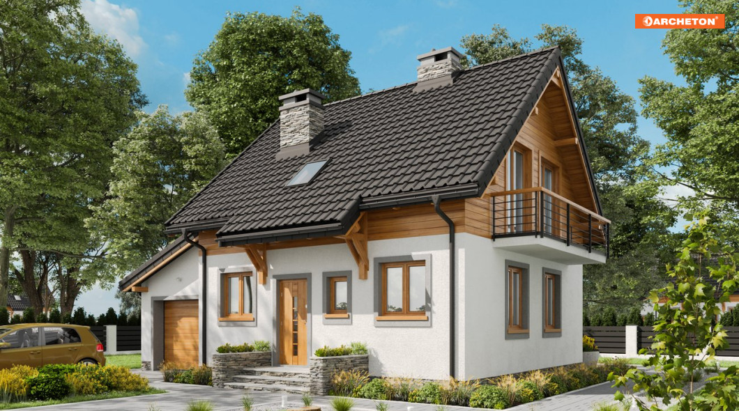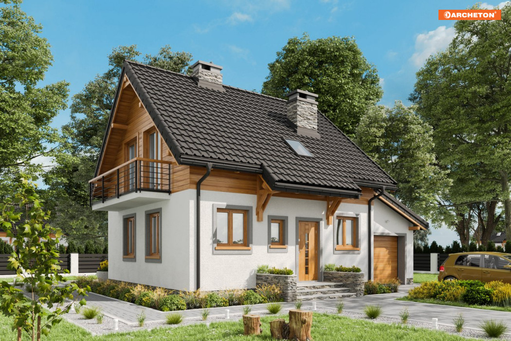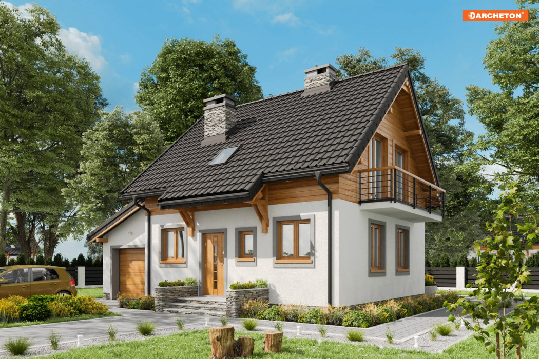 W rodzinie Smyka znalazło się kilka projektów najmniejszych i najprostszych domów parterowych z użytkowym poddaszem. Projekt domu Smyk jest najbardziej oszczędnym rozwiązaniem z dostawionym garażem i kalenicą dwuspadowego dachu równoległą do drogi dojazdowej. Zbliżony do kwadratu, zwarty rzut dzieli ściana nośna wyznaczająca po jednej stronie strefę wejścia i komunikacji z kuchnią i wc oraz szeroki salon z jadalnią po drugiej. Na poddaszu są trzy pokoje i łazienka. Do jednej ściany bocznej dostawiono garaż przekryty dachem pulpitowym, drugą urozmaica długi balkon otwierany z dwóch sypialni. Najbardziej zbliżony do projektu domu Smyk jest w rodzinie identyczny funkcjonalnie, a tylko nieco bardziej obszerny Smyk As, który także ma obniżony częściowo okap nad tarasem wejściowym i ogrodowym. Podobny rozkład ale jeszcze większe powierzchnie, obrócony dach, bardziej rozbudowaną bryłę, inne detale lub wariant bez garażu, znaleźć można wśród pozostałych projektów z Rodziny Smyka.