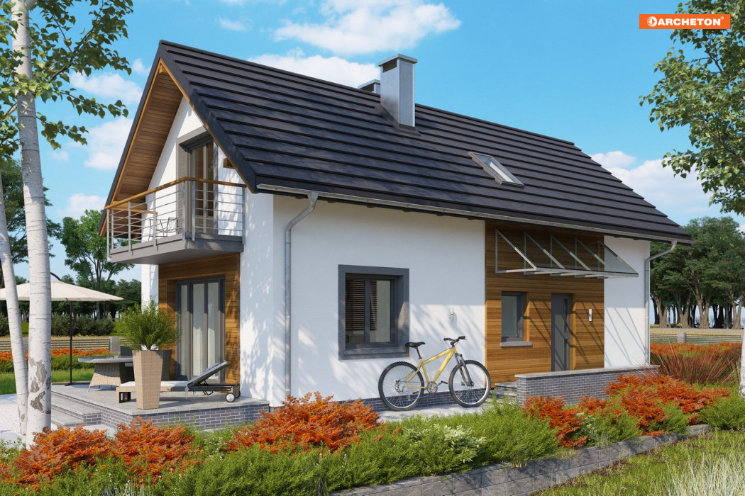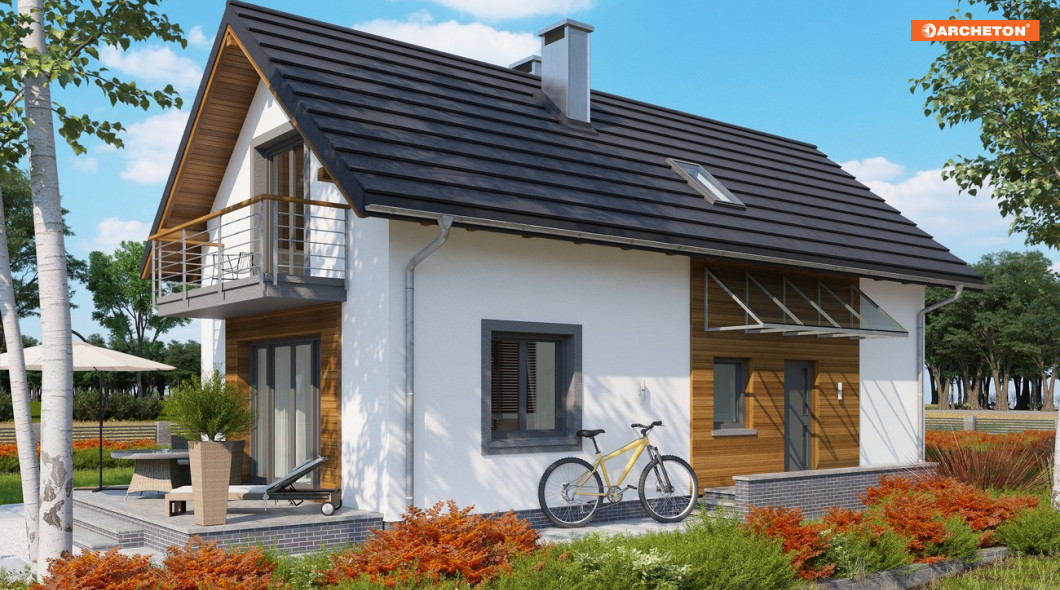Longinus Sto wyróżnia się smukłą sylwetką, bo, aby umożliwić wygodne wykorzystanie poddasza, zaprojektowano stosunkowo wysokie ścianki kolankowe (1,2m). Na uwagę w tym projekcie zasługuje bardzo nowocześnie pomyślana przestrzeń życia rodzinnego na parterze. Na wąskim, niewielkim rzucie udało się rozmieścić ustawną strefę dzienną, która mając otwarty charakter zachowuje czytelny podział na hol, kuchnię i jadalnię z salonikiem. Mimo niewielkiej powierzchni Longinus Sto dysponuje także wygodną sienią z głęboką szafą ubraniową, dodatkowym pokojem z garderobą na parterze oraz pralnią.