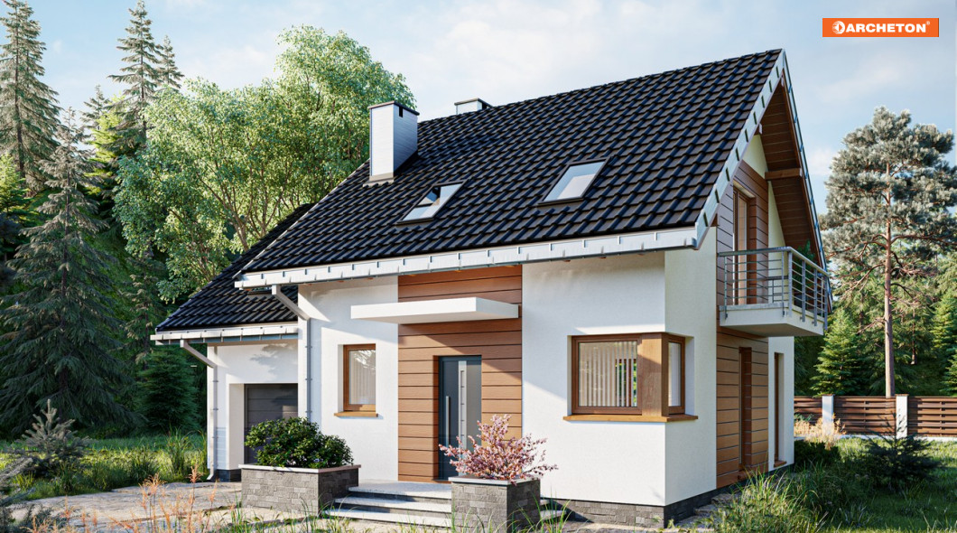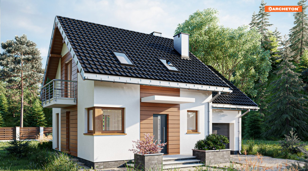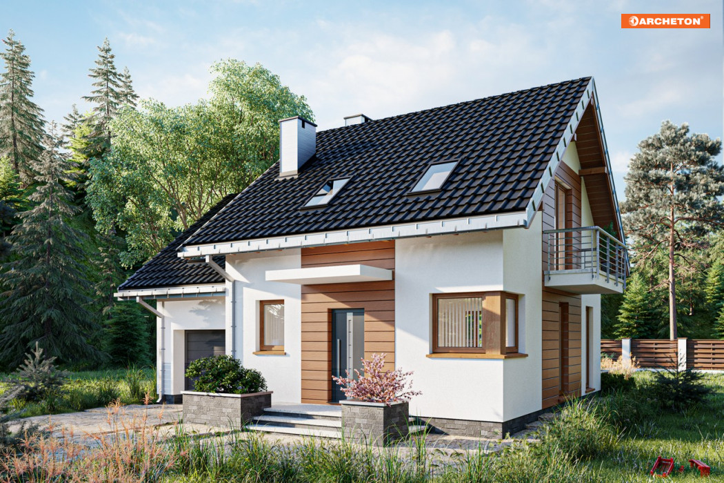 Wygodę, w domach parterowych z użytkowym poddaszem i z dostawionym garażem o tak niewielkiej powierzchni jak 90m2, zapewni tylko precyzyjny podział przestrzeni. Nie brak takich rozwiązań w ofercie Archetonu. Bywa jednak, że także ich realizacji nie podoła budżet części inwestorów. Dla nich mamy teraz jeszcze mniejszy, doskonale przemyślany projekt domu Romek.