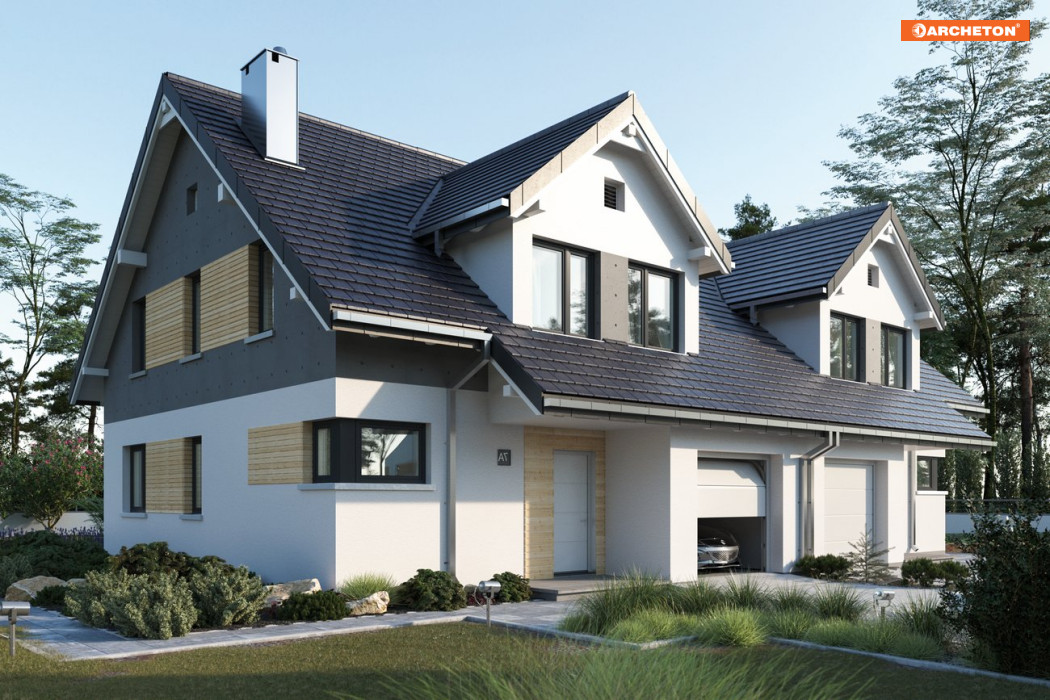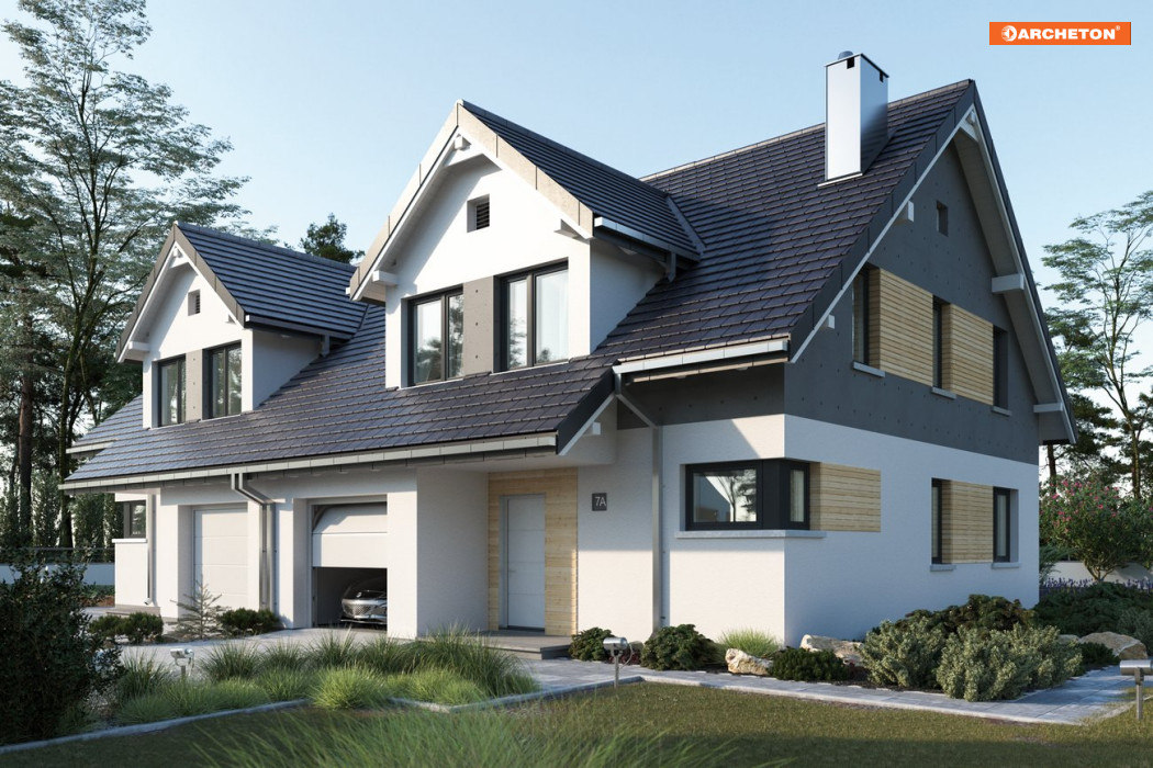 Lila Prima Duo, Lila 2 Duo i Lila Rex Duo to ekonomiczne propozycje do zabudowy bliźniaczej reprezentujące w Rodzinie Lili tradycyjną stylistykę. Przy powierzchni użytkowej ok.125 m2, projekt domu Lila Rex Duo oferuje mieszkanie dla pięcioosobowej rodziny o układzie identycznym jak mniejsze warianty ale zdecydowanie wygodniejsze i także wbudowany garaż. Część dzienna rozciąga się jedynie na tyłach domu, dzięki czemu od frontu, oprócz wjazdu do garażu, osobne pomieszczenia mogły zająć kotłownia i łazienka. Głębiej, naprzeciwko schodów, znalazła się otwarta, przestronna kuchnia, a po obu stronach szerokiego wyjścia na taras - salon i jadalnia. Na poddaszu zmieściły się aż cztery sypialnie z dużą łazienką. Wejście frontowe osłania przedłużony okap wsparty częściowo na wjazdowej części garażu. Lukarny po obu stronach dwuspadowego dachu zostały przekryte stromymi połaciami. Projekt domu Lila Rex Duo może być wykorzystany jako pojedynczy segment do zabudowy w granicy działki. Odróżnia go to od wariantów typu Duolit, które dotyczą dwóch lustrzanych, powiązanych konstrukcyjnie lokali.