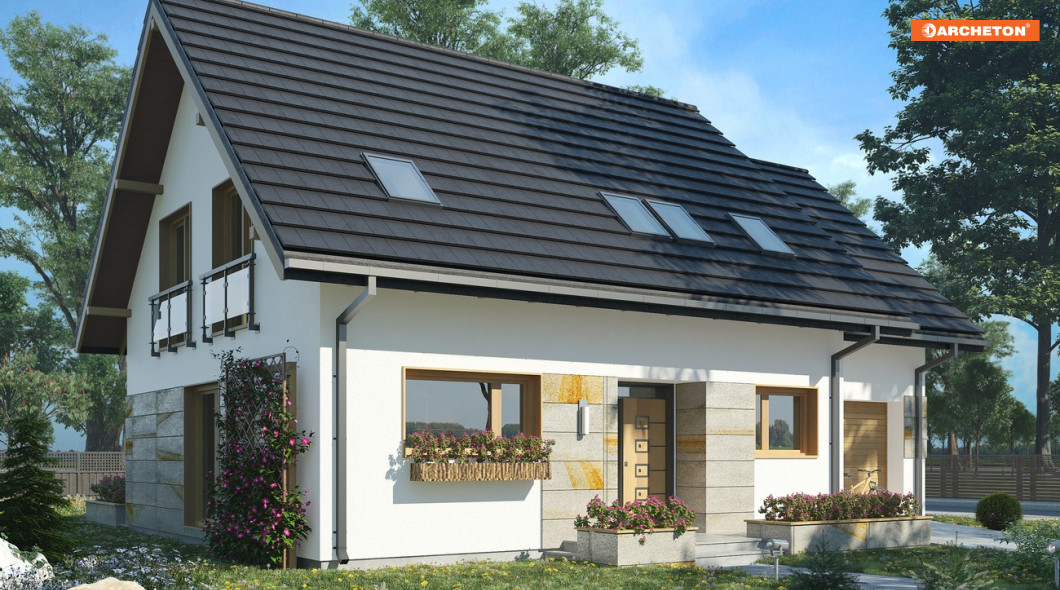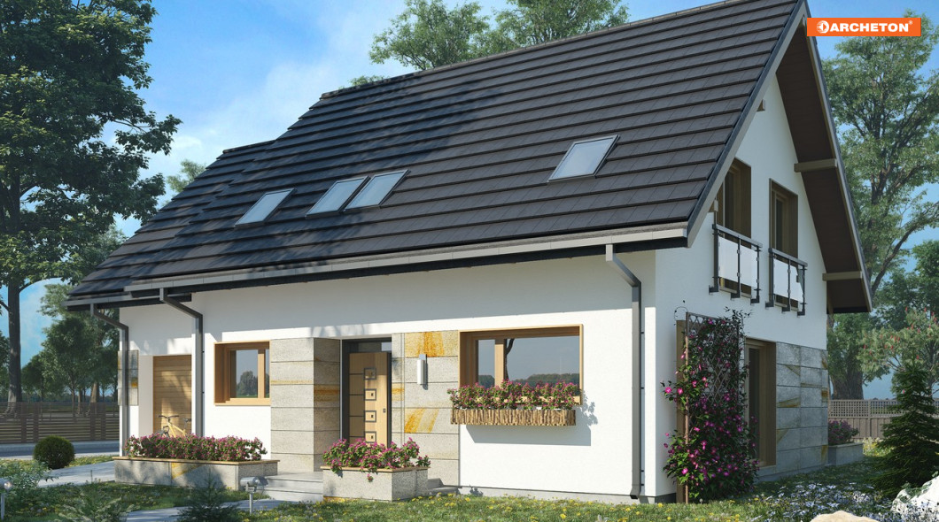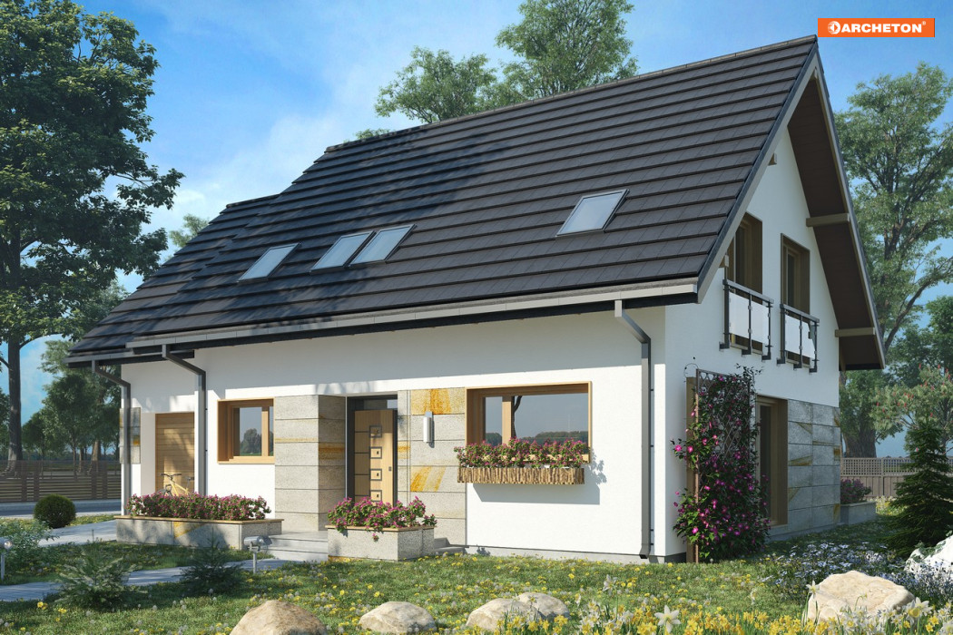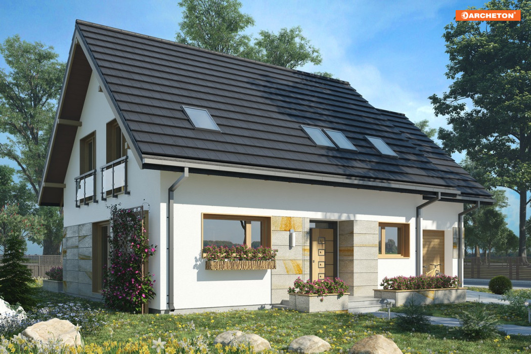 Projekt domu Sambor Alter jest największy w Rodzinie Sambora, w której skład wchodzi kilka projektów parterowych domów z użytkowym poddaszem: od małych (91,1m2) do tych średniej wielkości. Jest to grupa koncepcji bardzo ekonomicznych w realizacji, z energooszczędnym, zwartym rzutem i dwuspadowym, prostym dachem bez lukarn. Układ kompletnego mieszkania na parterze (dodatkowy pokój przy salonie + pełna łazienka) i kolejnych pokoi z łazienką na poddaszu ułatwia etapowanie budowy. Jak pozostałe, mniejsze warianty z garażem: Neo i Mobil, wersja Alter zamyka część mieszkalną na planie bardziej zbliżonym do kwadratu niż wersje bez garażu. Większa głębokość planu pozwala dodać do traktu gospodarczego kolejne pomieszczenie, co umożliwia przeniesienie kotłowni i uwalnia pomieszczenia przy sieni dla innych funkcji. Domy z Rodziny Sambora mają otwartą, nowoczesną strefę dzienną. Gładkie elewacje bez balkonów i prosty detal decydują o elegancji architektury w Rodzinie Sambora – znakiem rozpoznawczym w mniejszych wersjach jest tradycyjny, niewielki ganek wejściowy. W projekcie domu Sambor Alter zastąpiła go cienista wnęka poprzedzająca przedsionek.