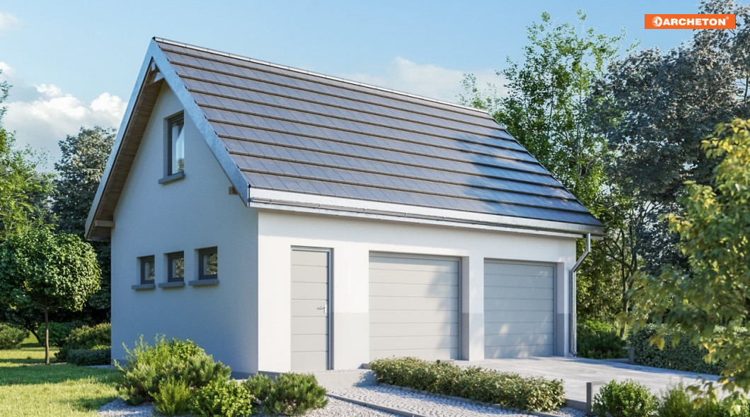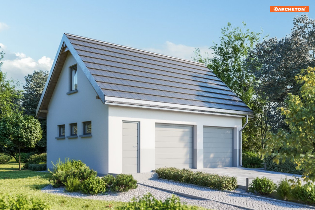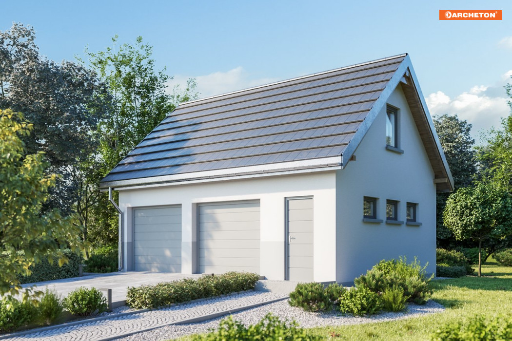 Garaż dwustanowiskowy z pomieszczeniem gospodarczym.