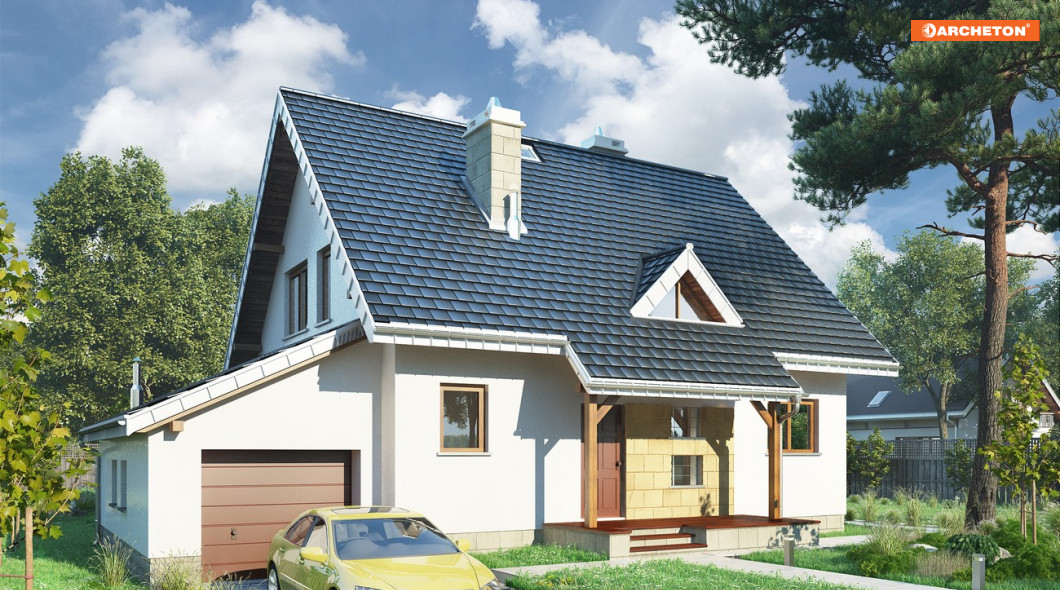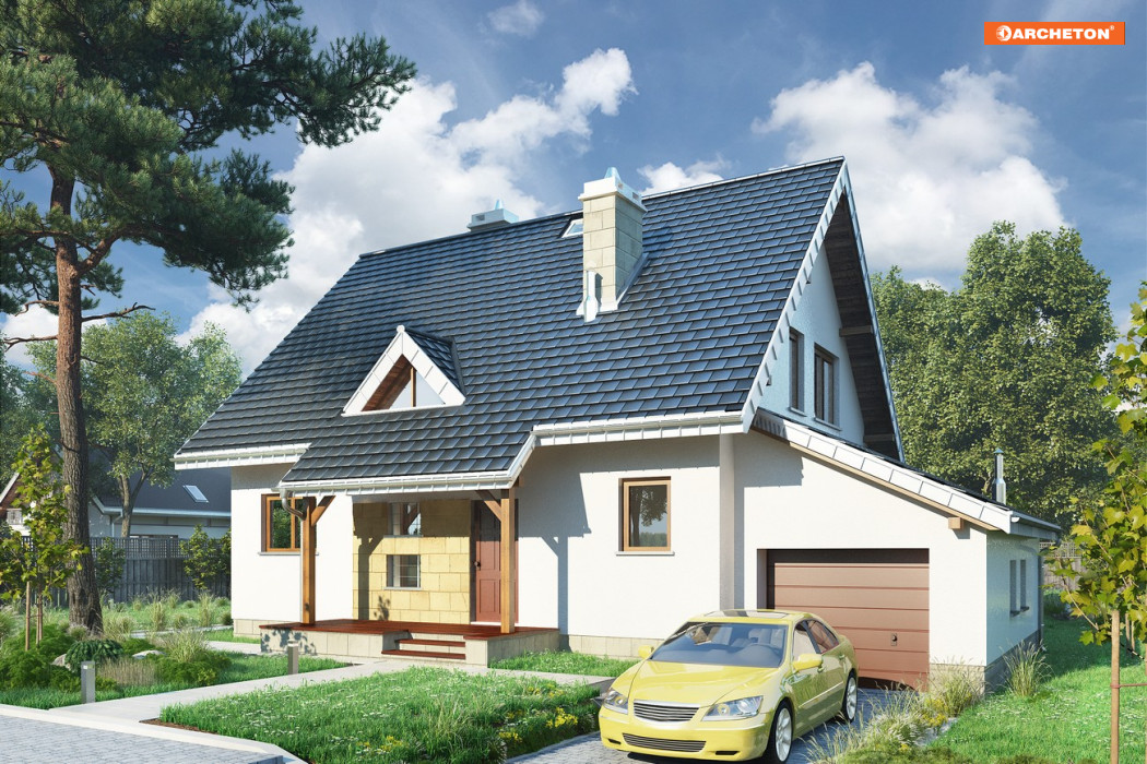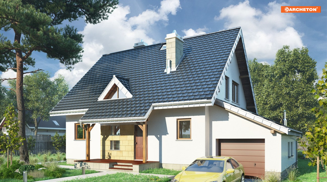 Kwestia kotłowni to jedno z ważnych kryteriów wyboru projektu. Nawet, kiedy odnawialne źródła zyskają przewagę w dostarczaniu energii, pomieszczenie gospodarcze nie straci na znaczeniu. Dlatego wśród domów parterowych z użytkowym poddaszem o powierzchni 115-125 m2, różne warianty jego umiejscowienia pokazano w ofercie Archetonu w wielu zbliżonych propozycjach. Projekt domu Ewa, w grupie koncepcji z dwuspadowym dachem o kalenicy równoległej do drogi dojazdowej, z dostawionym garażem o pulpitowym przekryciu i z dodatkowym pokojem przy salonie, wyróżnia kotłownia w przy wejściu. Znajduje się ona na jednym poziomie z częścią dzienną mieszkania, tradycyjnie podzieloną ścianami nośnymi. Garaż, w przeciwieństwie do podpiwniczonego domu Pod Lipą oraz Amelii, dostępny jest tylko z zewnątrz, co ułatwia wykorzystanie spadku na działce. Bryła w projekcie domu Ewa ma zwarty, energooszczędny kształt bez balkonów, z akcentem prostego ganku wejściowego i z podobną jak w Amelii, trójkątną lukarną doświetlającą schody. Wszystkie wymienione projekty łączy podobnie pomyślana strefa nocna na poddaszu - trzy wygodne sypialnie dla czterech osób z dużą łazienką.