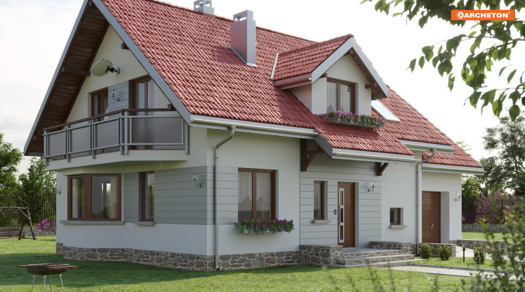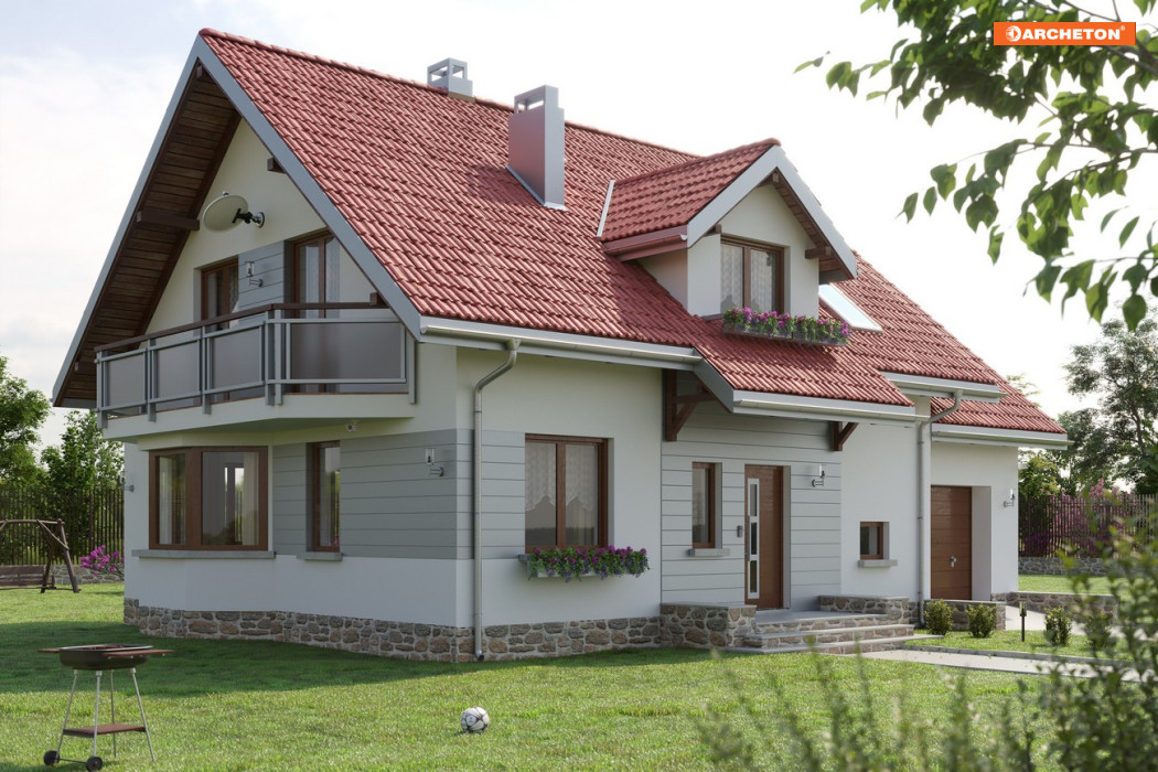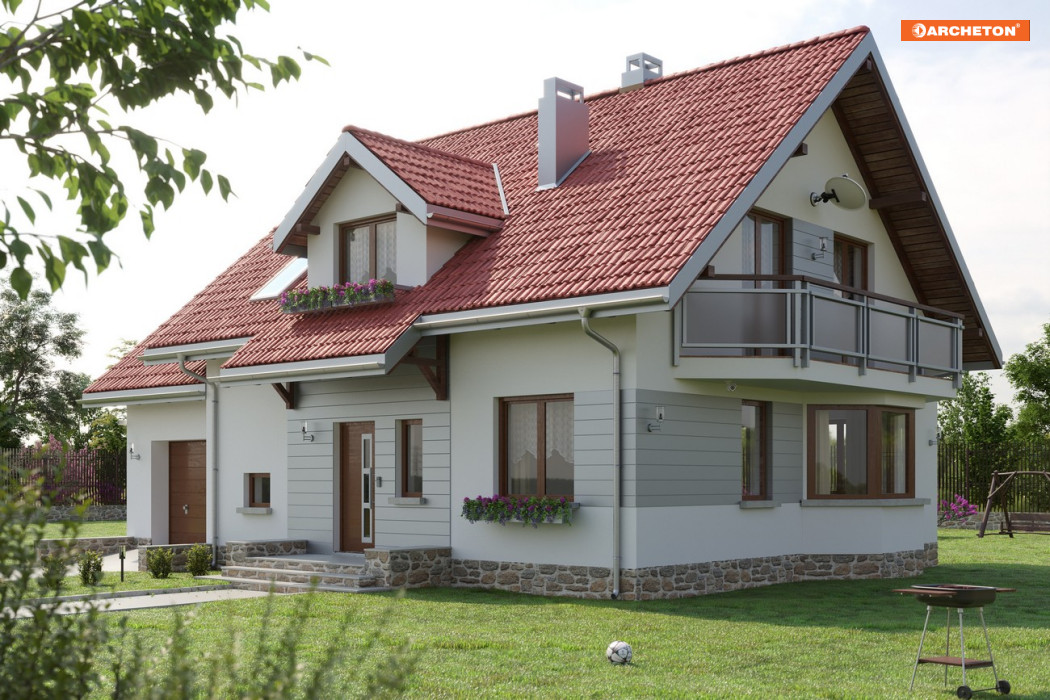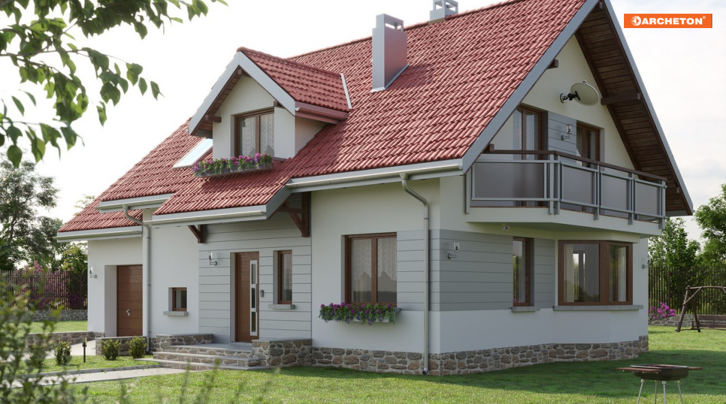 Rodzina Celesty grupuje projekty domów parterowych z użytkowym poddaszem i z dostawionym garażem. Przypominają one nieco rozwiązania z rodzin: Zoi, Zofii i Heleny czy Chabra ale charakterystyczny ryzalit z balkonem w ścianie bocznej został zsunięty z jej osi symetrii ku ogrodowi, a ulokowana w nim jadalnia stała się wyraźniej częścią salonu. Projekt domu Celesta Rex jest jednym z większych w rodzinie, przy tym samym programie funkcjonalnym, zbliżonym obrysie planu oraz z tradycyjnie zamkniętymi pomieszczeniami parteru. Środkiem rzutu części mieszkalnej biegnie ściana nośna zamykając od frontu kuchnię, sień, łazienkę i schody ze schowkiem pod podestem oraz salon z dodatkowym pokojem od ogrodu. Poddasze oferuje cztery wygodne pokoje i zgrabny przedpokój z łazienką. W projekcie domu Celesta Rex, jak w we wszystkich rodzinnych wariantach, bryłę podzielono na wyższą część mieszkalną i nieco niższą – garażową. Przekryto je osobnymi dwuspadowymi dachami z kalenicą równoległą do drogi dojazdowej. Lukarny w dachu po obu stronach kalenicy i przedłużony częściowo okap nad wejściem frontowym nawiązują do sylwetki Zoi.