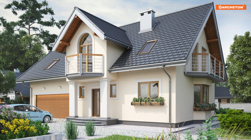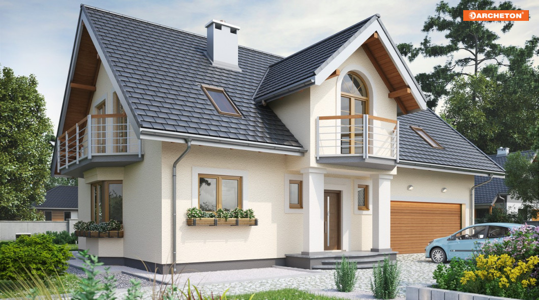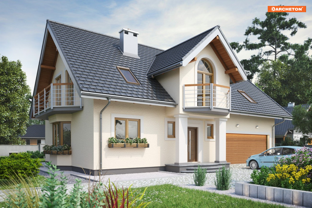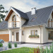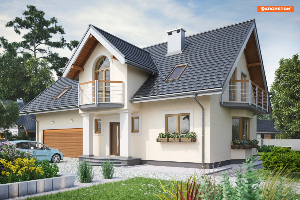 Parterowy dom z użytkowym poddaszem, z częścią gospodarczą przy ściany bocznej to ekonomiczne rozwiązanie dla inwestorów indywidualnych. Takie są projekty domów małych i średnich: Zoja, Zofia i Helena z balkonem na ryzalicie w ścianie szczytowej. Na parterze mają pokój dzienny z jadalnią, kuchnię oraz przejście pod schodami do garażu i kotłowni. Projekt domu Zofia Portyk G2, największy w Rodzinie Zofii, oferuje dodatkowy pokój przy salonie, spiżarnię przy kuchni i szafę w sieni. Ma zwarty obrys oraz wspólny dach dla części mieszkalnej i garażowej. Symetryczny rysunek lukarny od frontu i ogrodu oraz położenie kominka przy kuchni odróżnia ją od projektów z Rodziny Zoi, a łączy z Heleną. W stosunku do Rodziny Heleny, Zoje i Zofie mają odwrócone biegi klatki schodowej, a zamiast garderoby przy sieni jest większa łazienka z oknem. Projekt domu Zofia Portyk i Zofia Portyk G2 wyróżniają w rodzinie półkoliste drzwi balkonowe i kolumny w detalu frontowym. Wariant G2, z największym garażem i pomieszczeniem gospodarczym, ma imponujący zespół głównej sypialni nad nimi. Oddzielono ją, jak we wszystkich wersjach, różnicą poziomów od pozostałej części nocnej z 3 pokojami.