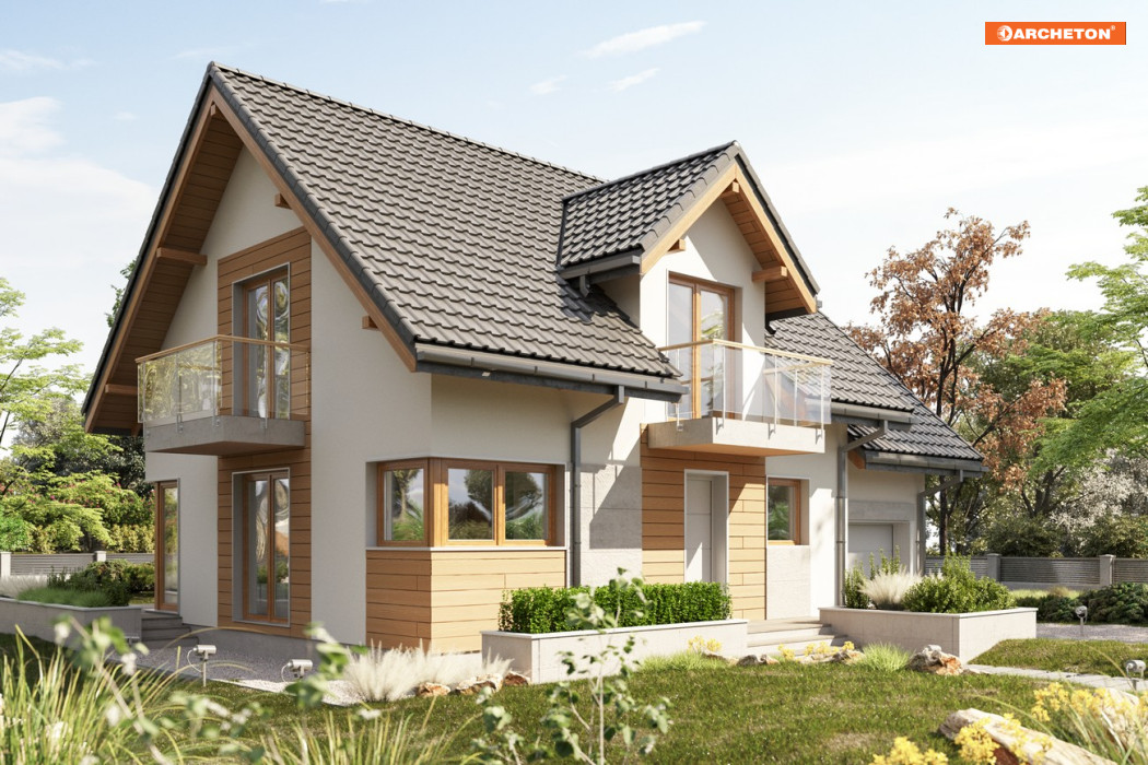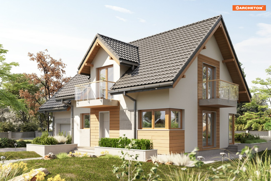 Parterowe domy z użytkowym poddaszem i garażem o powierzchni ok. 120m2 cieszą się największym zainteresowaniem. W tej grupie, między Rodziną Heleny (z historyzującymi detalami), a prostym i nowoczesnym Świetlikiem, znalazło się miejsce dla projektu domu Halina. Będzie konkurował o zainteresowanie osób szukających w architekturze znajomych form ale otwartych też na nowości. Funkcjonalny, sprawdzony w innych koncepcjach układ mieszkania Haliny nie przewiduje wyróżnienia jadalni ryzalitem (jak w Helenie). Sposób połączenia kuchni z salonem proponuje rozwiązanie kompromisowe - dla niezdecydowanych w kwestii dzielenia strefy dziennej. Innowacją jest też brak kominka, którego praca nie jest obojętna dla środowiska. Dzięki lukarnom w dachu, na poddaszu znalazły się cztery, nie trzy sypialnie (jak w Świetliku). W sylwetce domu wyraźnie odświeżający efekt wdały narożne okna. Praca w jasnej kuchni z panoramicznym widokiem i spiżarnią to czysta przyjemność! Pudełkowe balkony nad wejściami są także nowoczesne, a przy tym praktyczne. Od frontu, w najgorszą pluchę można spokojnie złożyć parasol i poszukać kluczy. Od ogrodu w upalny dzień kojąco podziała relaks w cieniu.