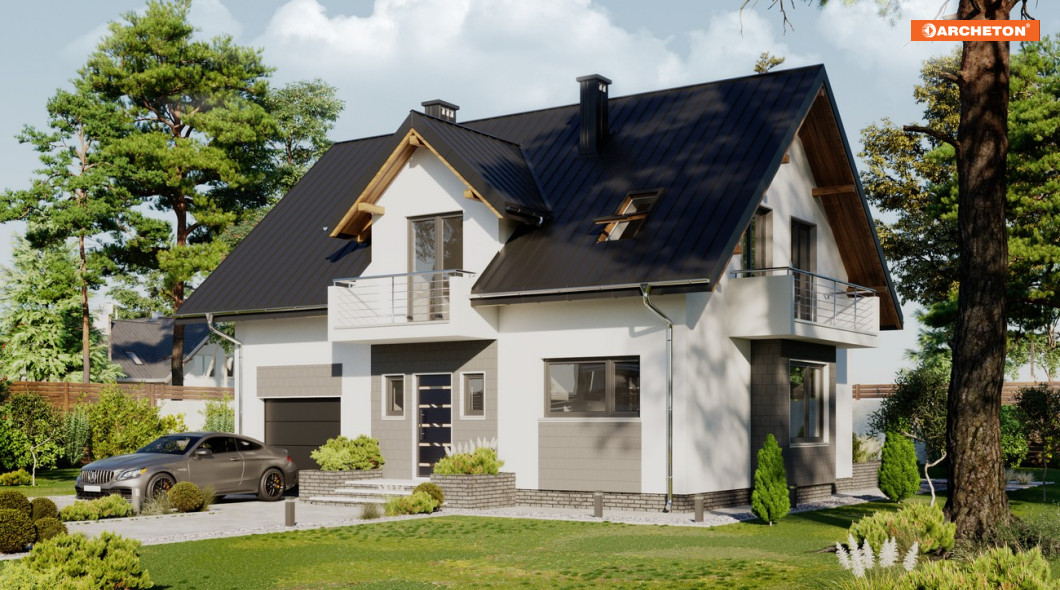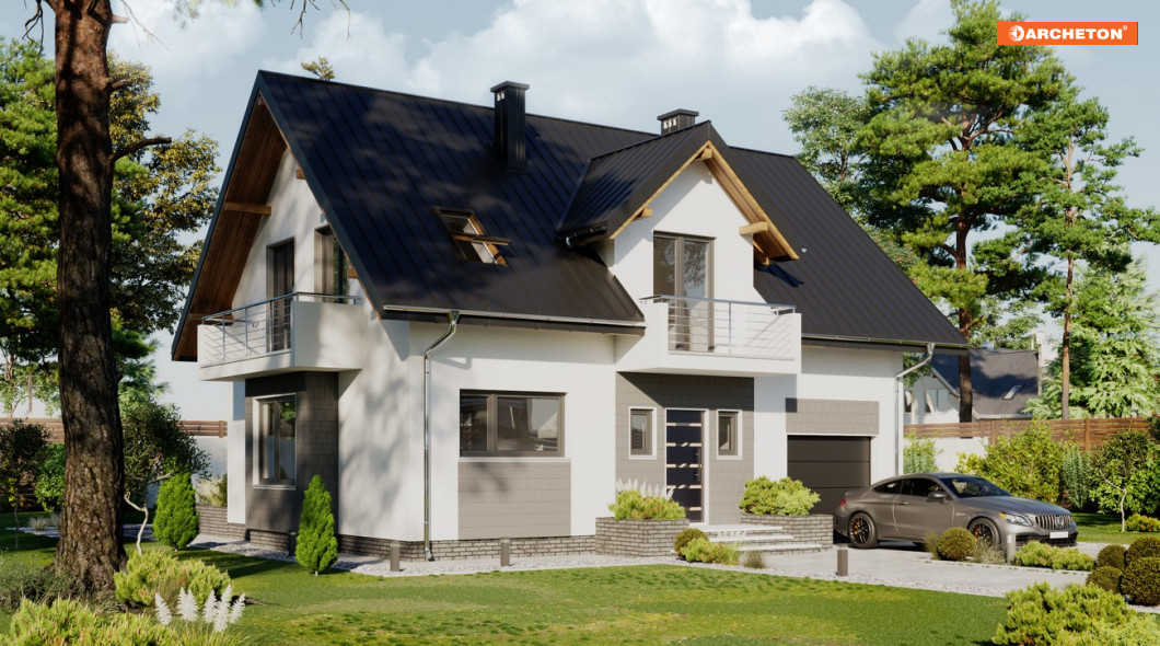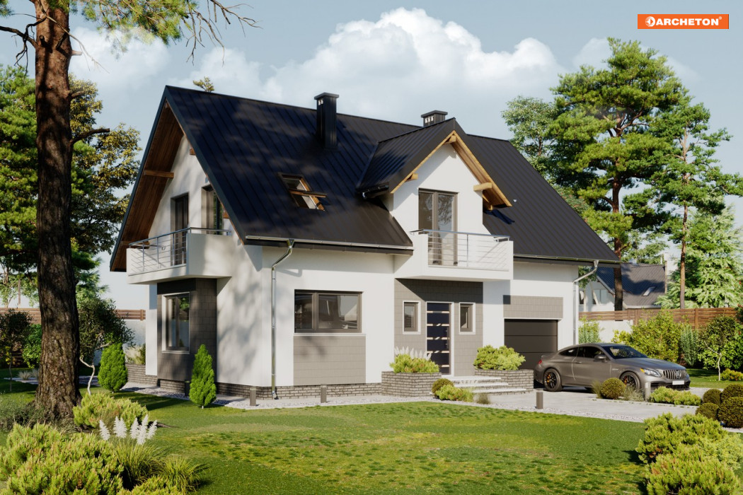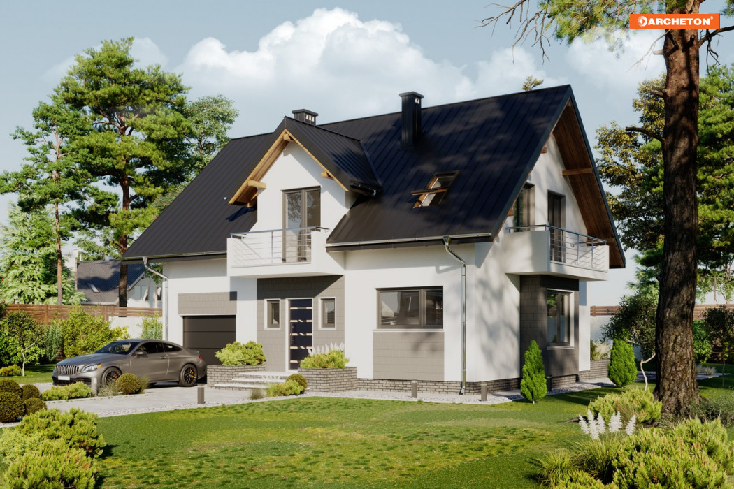 Parterowy dom z użytkowym poddaszem, z częścią gospodarczą przy ściany bocznej to ekonomiczne rozwiązanie dla inwestorów indywidualnych w budownictwie mieszkaniowym. Takie są projekty domów małych i średnich: Zoja, Zofia i Helena z balkonem na ryzalicie w ścianie szczytowej. Wykorzystują przestrzeń pod dwuspadowym dachem nad obiema częściami budynku na strefę nocną z dwoma łazienkami. Oddzielono w niej różnicą poziomów główną z 4 sypialni. Na parterze jest pokój dzienny z jadalnią, kuchnia oraz przejście do garażu i kotłowni. Projekt domu Zofia Bobo jest jednym z najmniejszych w Rodzinie Zofii. Nie mając dodatkowego pokoju na parterze wyróżnia się dużą powierzchnią salonu, otwartymi schodami i kominkiem ekonomicznie zblokowanym z kominem kotłowni. Na skromniejszej powierzchni parteru zmieściło się przy sieni tylko wc. Budynek ma, jak wszystkie wersje z pojedynczym garażem, zwarty obrys części mieszkalnej i garażowej oraz wspólny dla nich dach. Symetryczny rysunek lukarny z balkonem nad wejściem frontowym odróżnia go od Zoi, a łączy z Heleną. Projekt domu Zofia Bobo, przy mniejszej skali, zachowuje charakterystyczne dla rodziny Zofii detale: lukarny i dekoracyjne balkony.