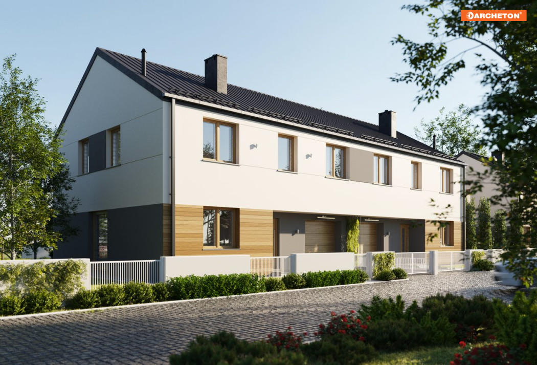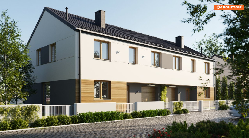 Dom piętrowy z garażem Emma Duolit to budynek jednorodzinny dwulokalowy, w którym surowość prostej, pozbawionej ozdobników bryły, przełamują kreatywnie dobrane dodatki.