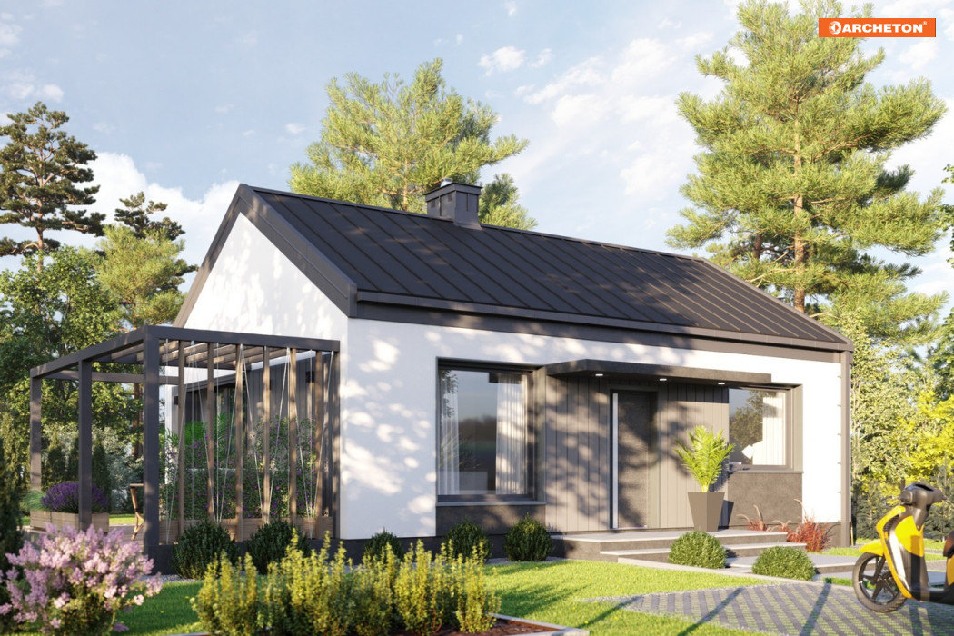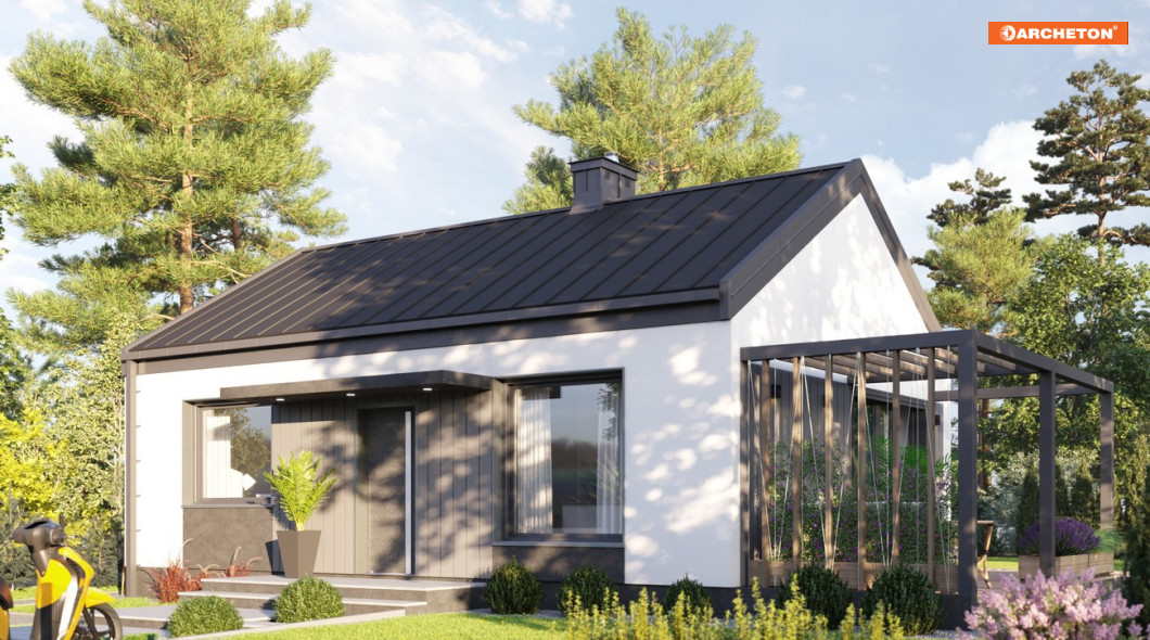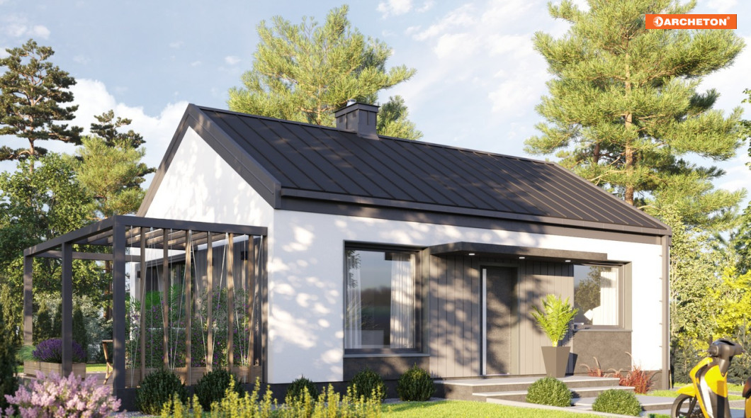 Mały dom parterowy z dachem dwuspadowym to projekt, który urzeka prostą bryłą, niezakłóconą przez żaden niepotrzebny naddatek. Efekt ten współtworzy też dach bezokapowy, będący kwintesencją nowoczesnych trendów w architekturze.