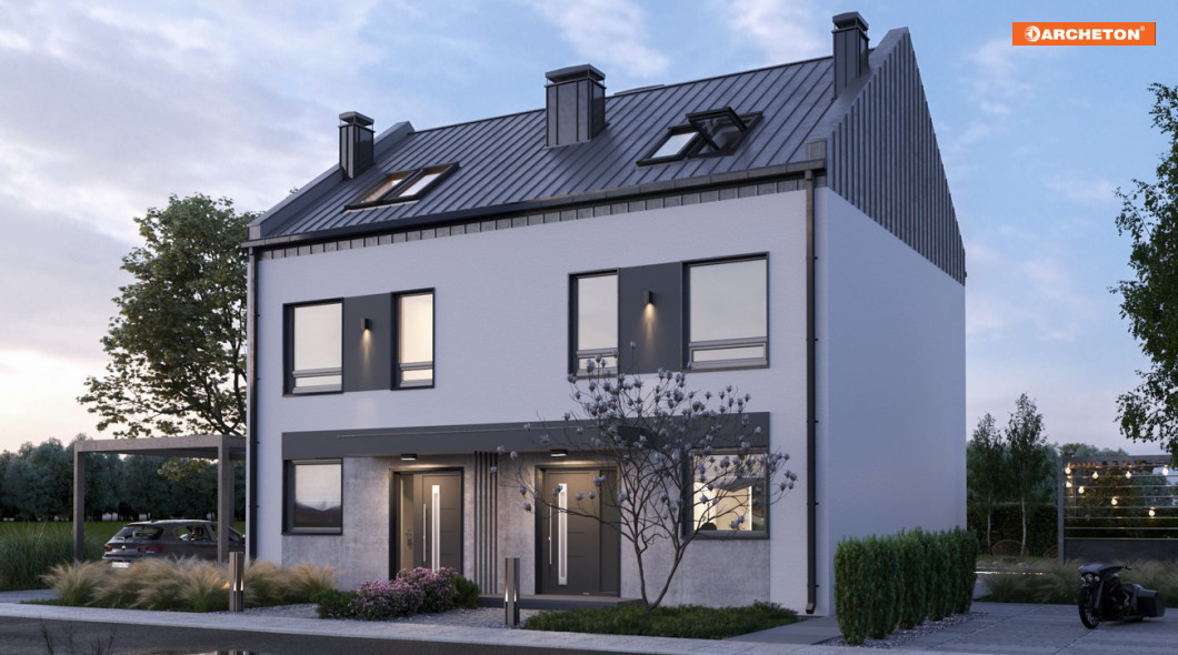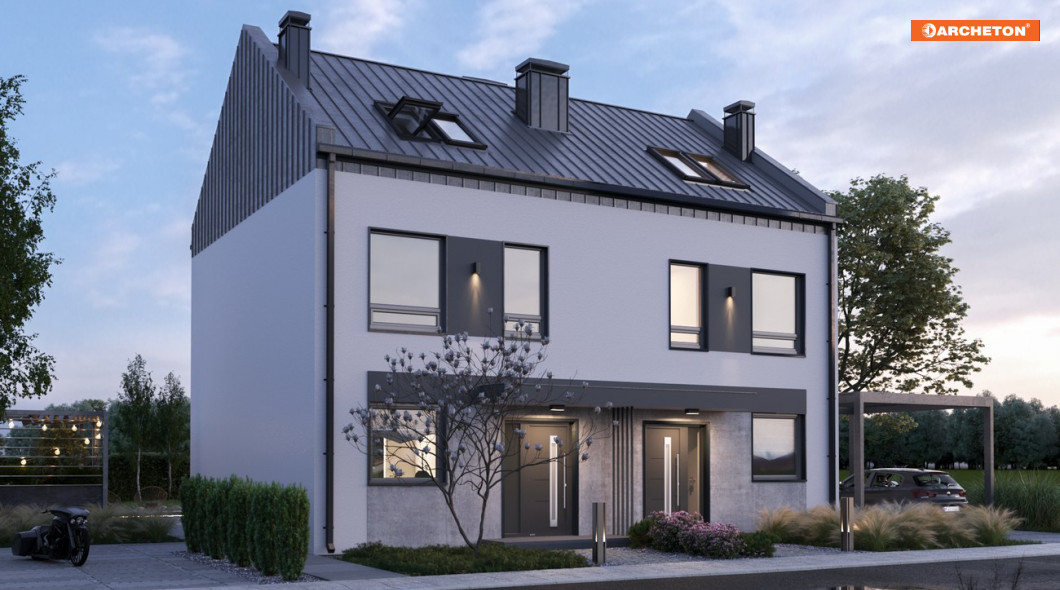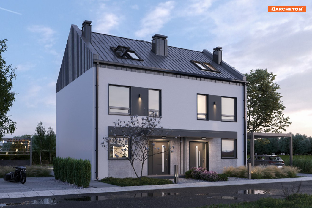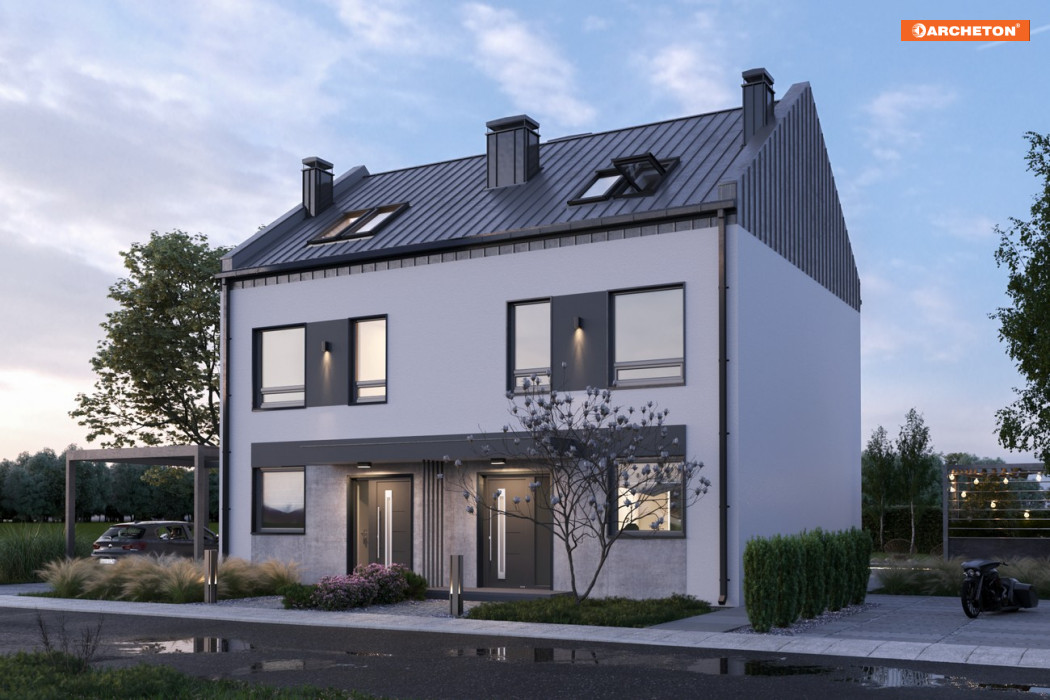 Dom dla dwóch rodzin z osobnym wejściem to dobre rozwiązanie dla tych, którzy lubią mieszkać blisko rodziny, a jednocześnie cenią sobie prywatność i niezależność. To też świetny sposób na obniżenie kosztów budowy i eksploatacji (niższe rachunki za ogrzewanie dzięki oddzieleniu budynków ścianą wewnętrzną, a nie zewnętrzną).