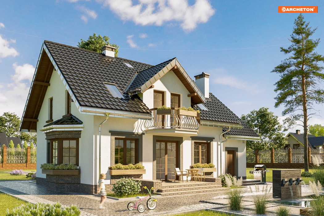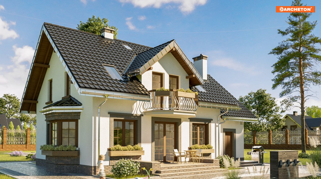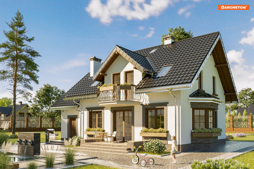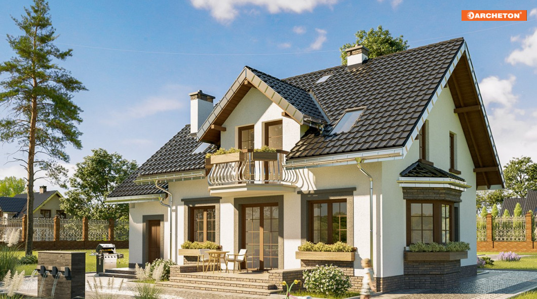 Rodzina Celesty grupuje projekty domów parterowych z użytkowym poddaszem i z dostawionym garażem. Przypominają nieco rozwiązania z Rodzin: Zoi, Zofii i Heleny czy Chabra ale charakterystyczny ryzalit w ścianie bocznej został zsunięty z jej osi symetrii ku ogrodowi, a ulokowana w nim jadalnia stała się częścią salonu. Projekt domu Celesta Bona jest średni w rodzinie ale, tak jak pozostałe wersje i Chaber a odmiennie niż Zoja czy Helena, ma tradycyjnie wydzielone pomieszczenia parteru. Środkiem rzutu biegnie ściana nośna zamykając od frontu kuchnię, sień, łazienkę i schody oraz salon z dodatkowym pokojem od ogrodu. Poddasze oferuje trzy wygodne sypialnie, gabinet i zgrabny przedpokój z dużą łazienką. Lukarny w dwuspadowym dachu po obu stronach kalenicy i balkony nad wejściem oraz nad tarasem ogrodowym nawiązują do sylwetki Zofii. Odmienny jest jednak budowa bryły i dachu, które podzielono na część mieszkalną i niższą – garażową. Tylko w projekcie domu Celesta Bona, zamiast balkonu na ryzalicie jadalni, ukształtowano wielospadowy, dekoracyjny daszek.
