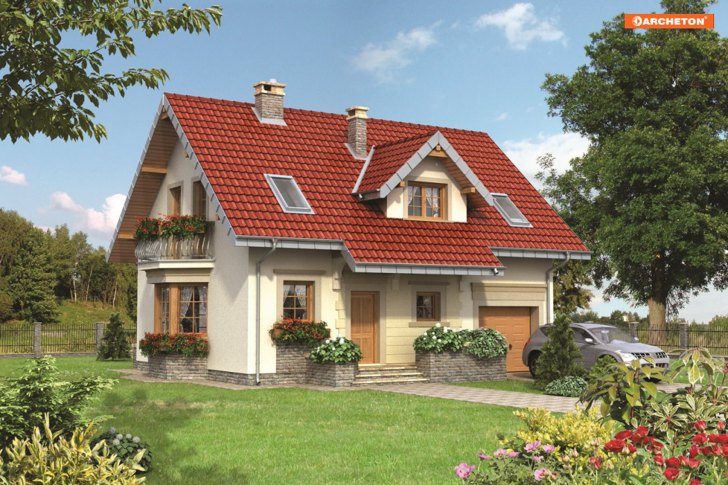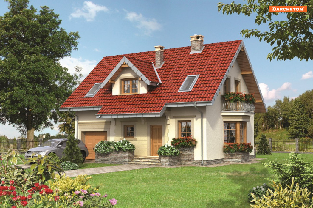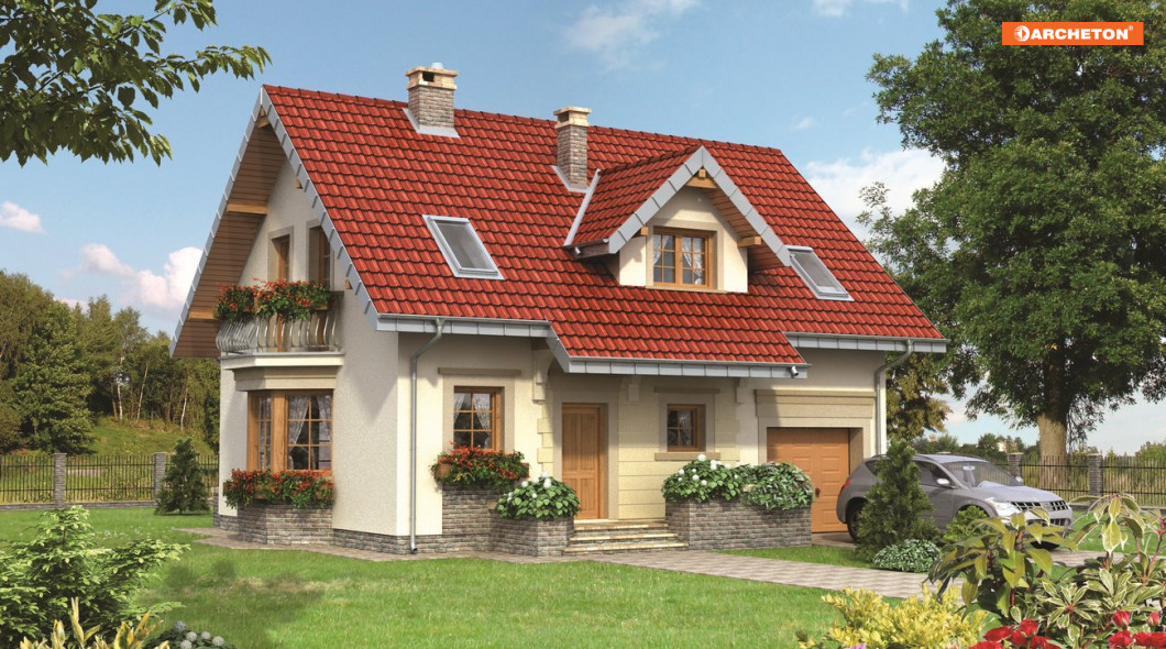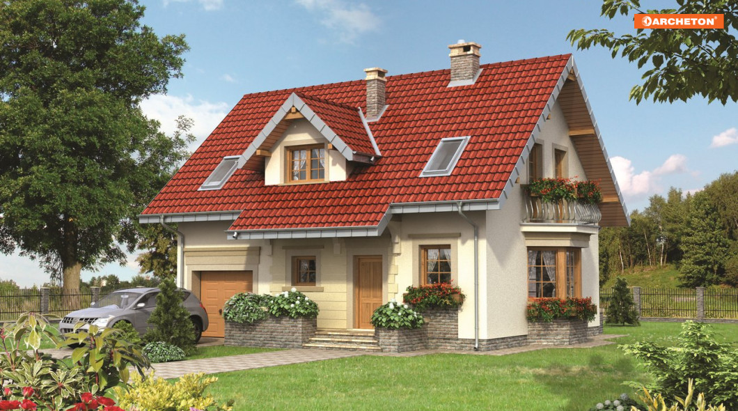 Projekt domu Zojka MIni należy do rodziny Zojki. Projekty z tej grupy spełniają wszystkie, najczęściej formułowane oczekiwania inwestorów chcących wybudować niewielki dom jednorodzinny z użytkowym poddaszem i z garażem jednostanowiskowym.