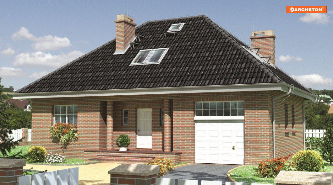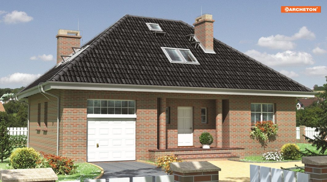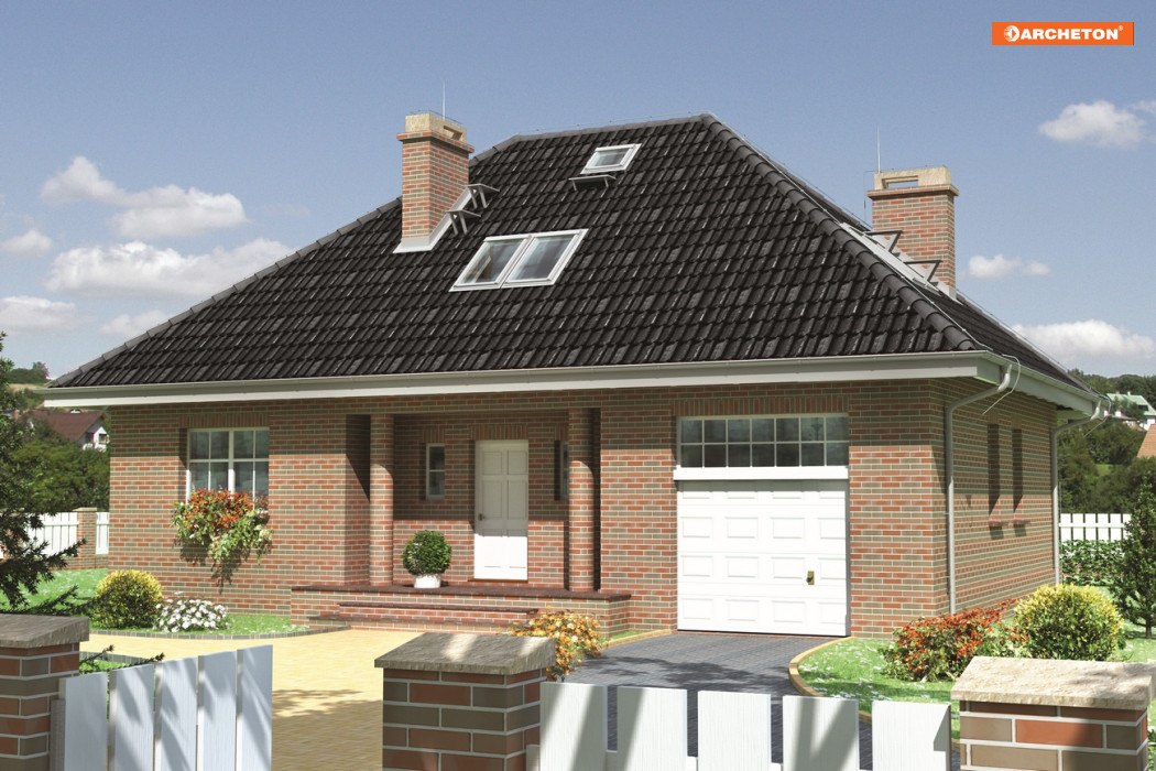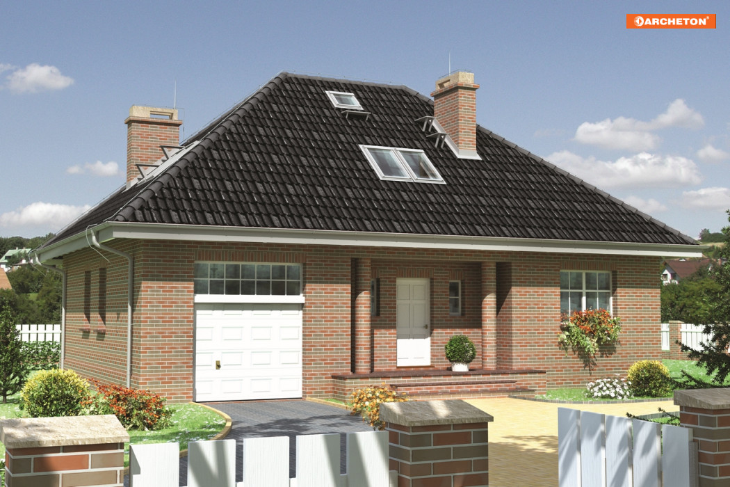 Bryłę stanowi prostopadłościan nakryty dachem czterospadowym o kącie nachylenia 40°. Urozmaicają ją dwa podcienie: wejściowy i ogrodowy.
