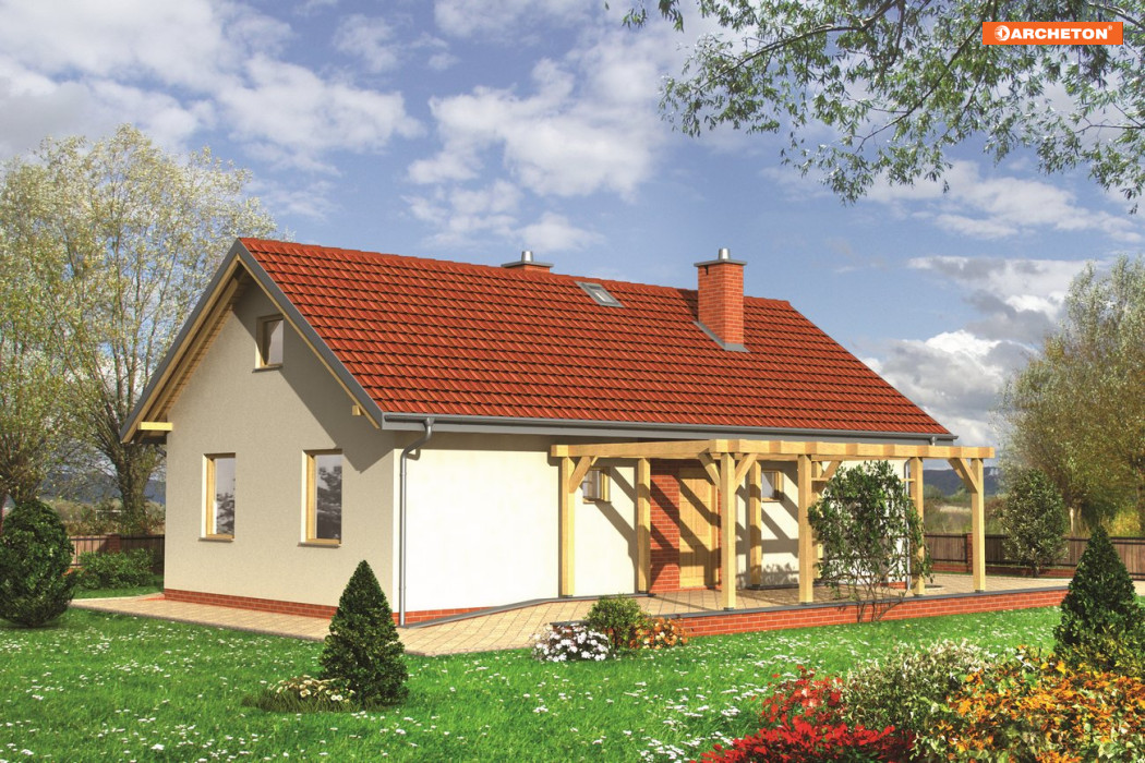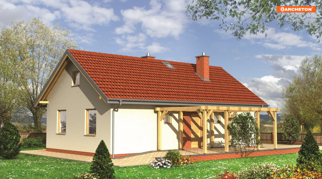 Projektów domów parterowych bez garażu, o powierzchni użytkowej ok. 70m2 jest w dorobku Archetonu co najmniej kilkanaście. Jednak tylko kilka oparto na tak zdyscyplinowanym, energooszczędnym rzucie jak projekt domu Maluch Bis. Wśród propozycji z dwuspadowym dachem i wejściem w dłuższej elewacji jest najwęższy (nadaje się na bardzo płytkie parcele), a brak okien w elewacjach bocznych zmniejsza minimalną wymaganą szerokość działki. Niewysoka, tradycyjna sylwetka ma przewagę na terenach ochrony krajobrazu naturalnego.