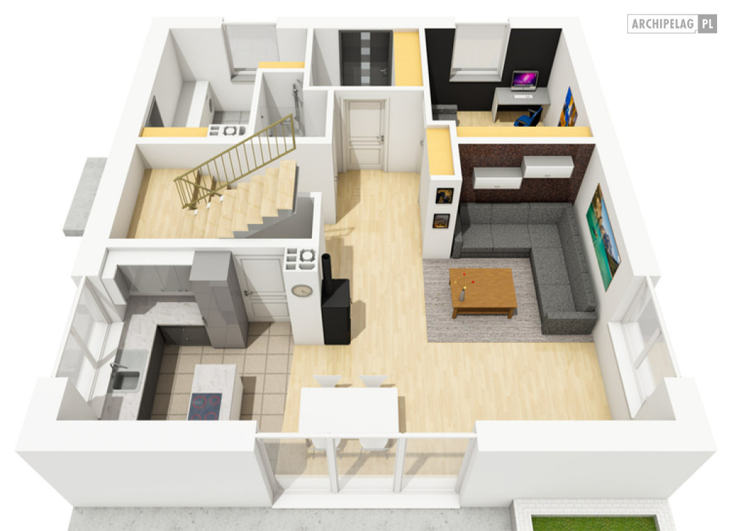 II – kuchnia usytuowana od frontu, bez garażu i z garażem