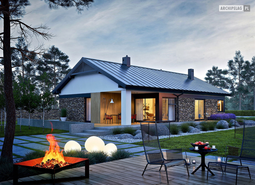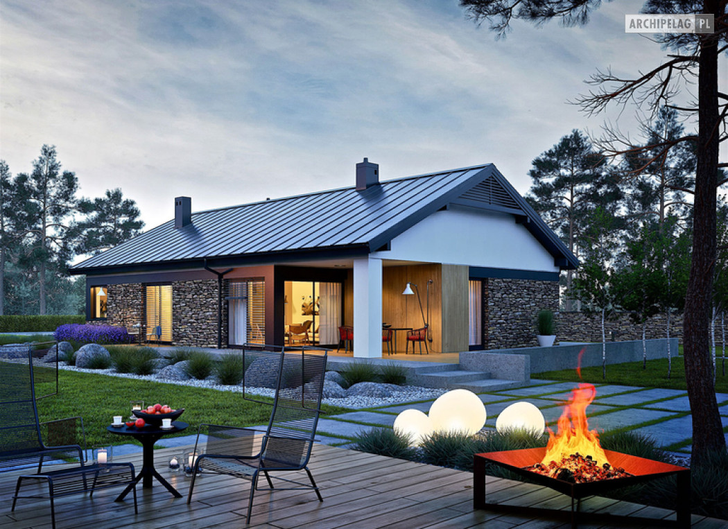 podobny układ funkcjonalny, prefabrykowane wiązary dachowe, dach o