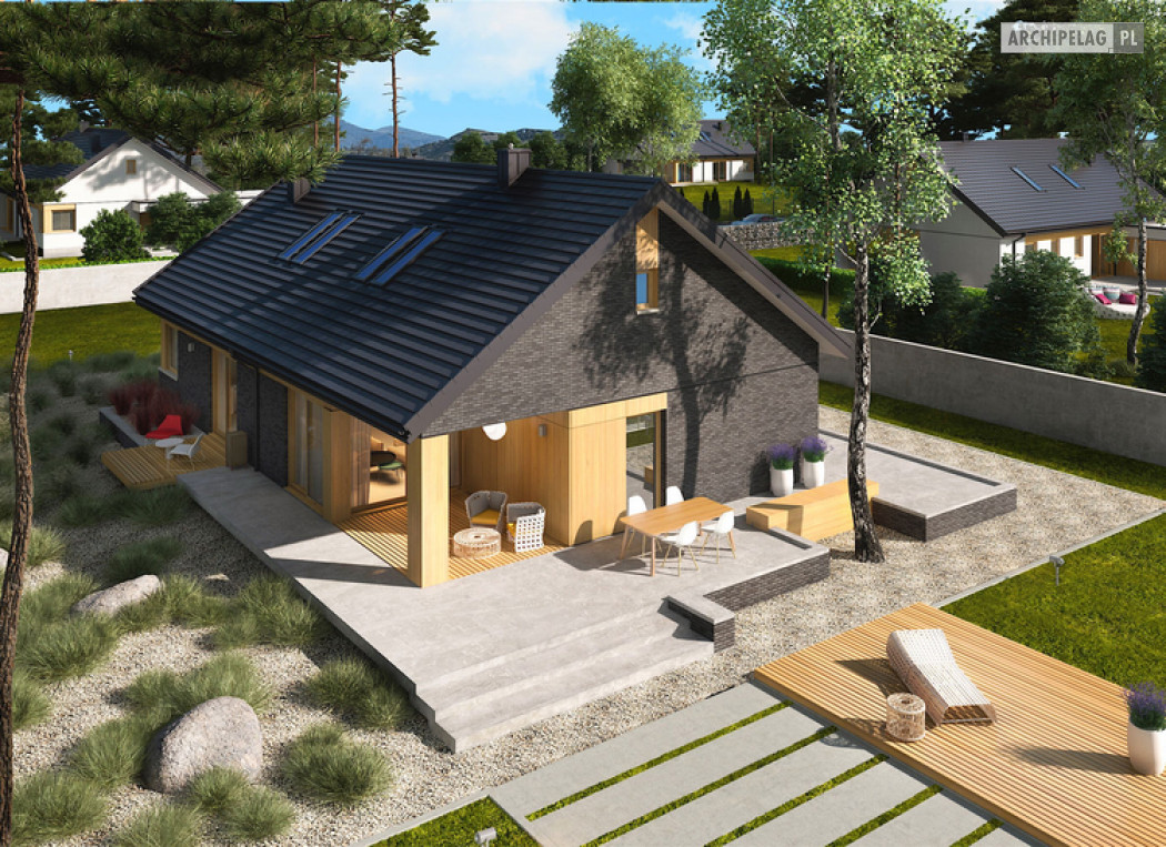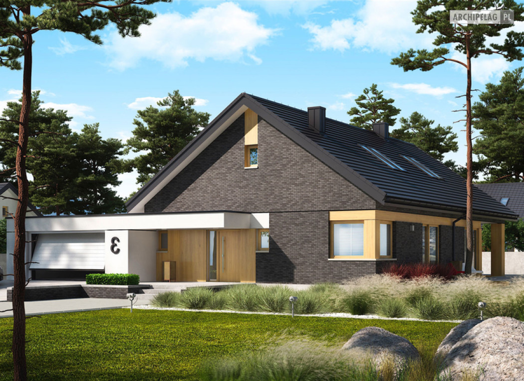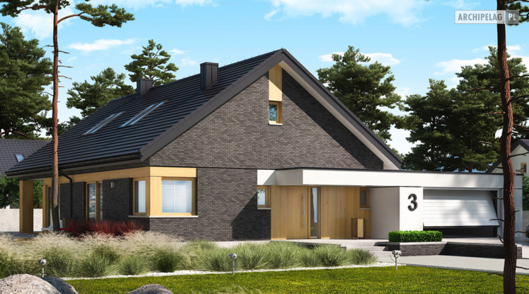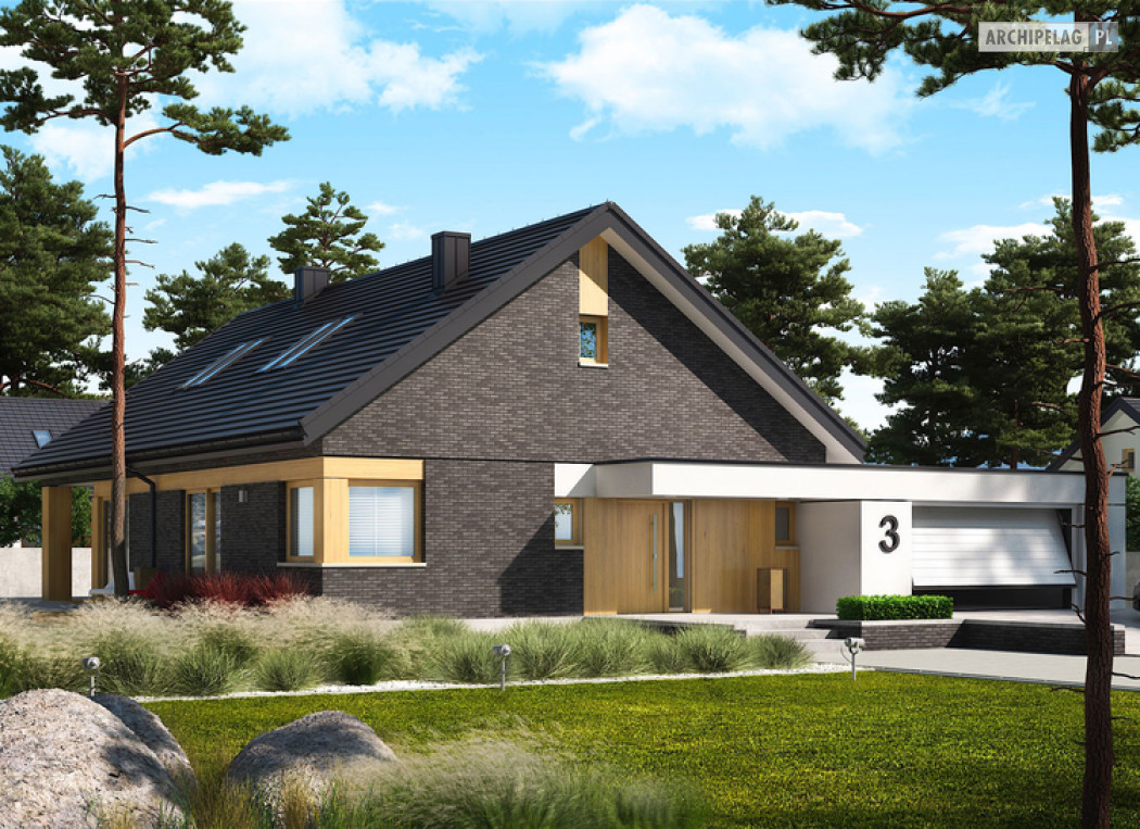 - Daniel G1 (30 stopni) - dach o kącie nachylenia 30°, tradycyjna więźba dachowa, garaż jednostanowiskowy