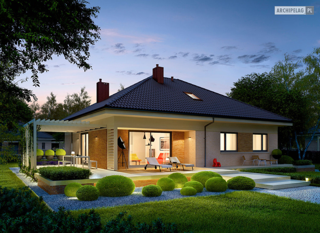 - Podcień nad dużym przeszkleniem salonu - ochrona pomieszczenia przed przegrzewaniem
