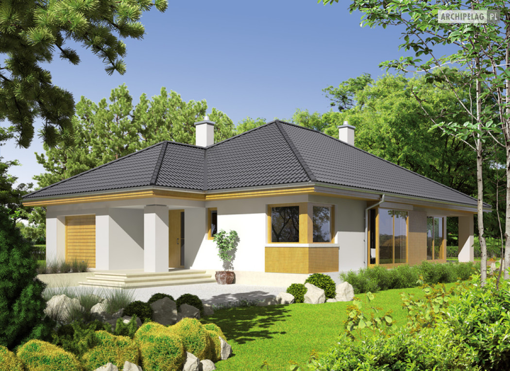 Charakterystyka: Dom parterowy, niepodpiwniczony, z garażem jednostanowiskowym