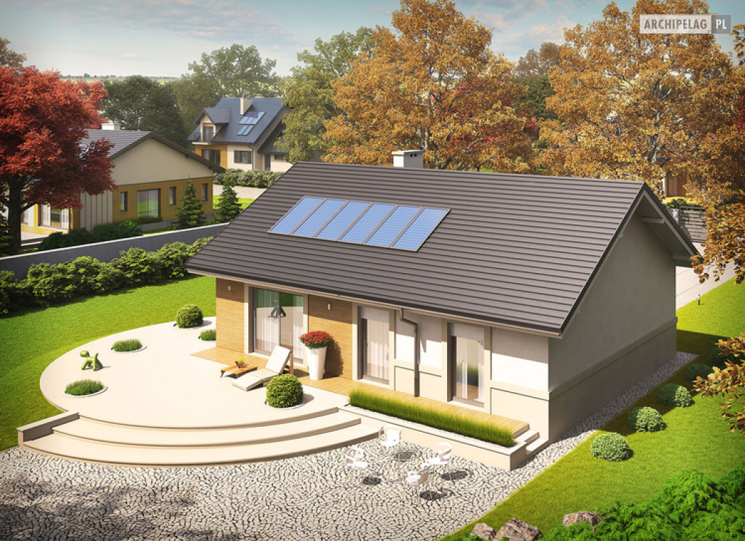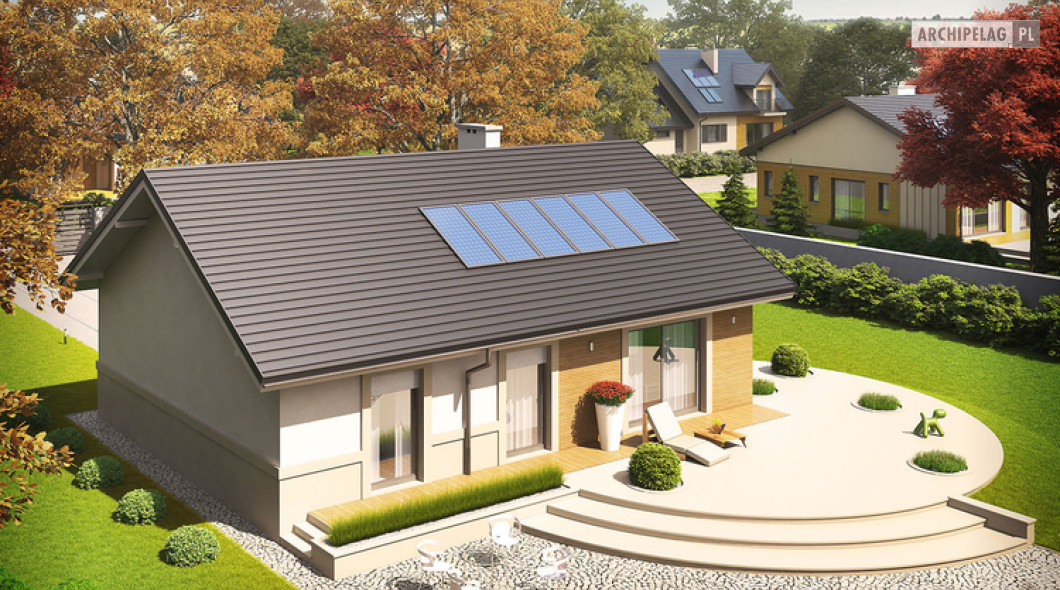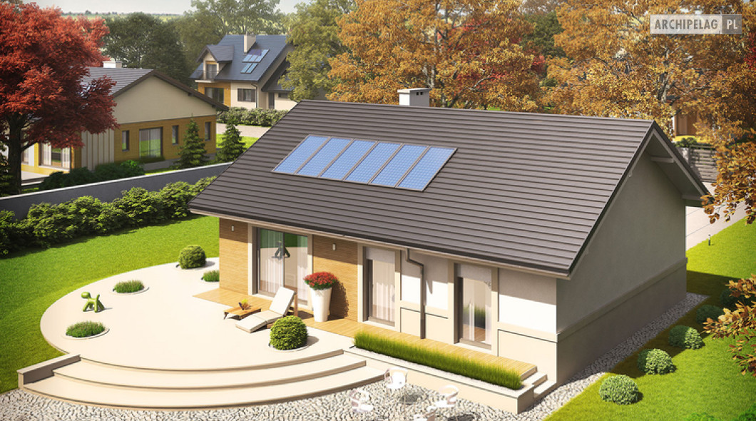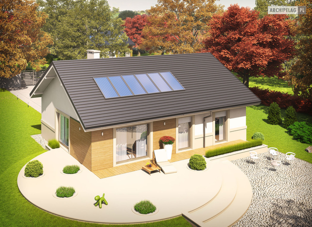 - Zwarta, klasyczna bryła budynku minimalizująca możliwość wystąpienia mostków
